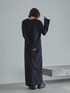 シンプルながら存在感のあるデザインで、幅広いシーンに対応するロングドレス ネックや袖口のフリンジが程よい抜け感を演出し、重くなりすぎない印象に◎