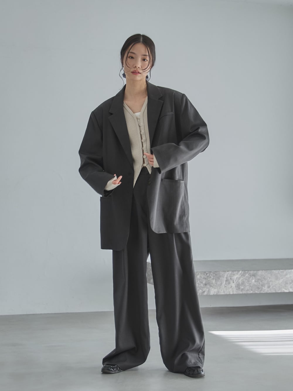 セットアップ対応で着回し力の高いオーバーサイズジャケット。 オケージョンシーンにも映える高見え素材で、ワードローブに長く寄り添う一着です◎