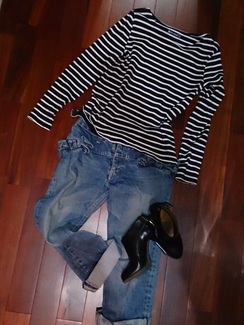 tops: プチバトー pants: ジュンヤワタナベ コム・デ・ギャルソン shoes: Dr.MARTENS 中に白シャツ着てもイイネ!