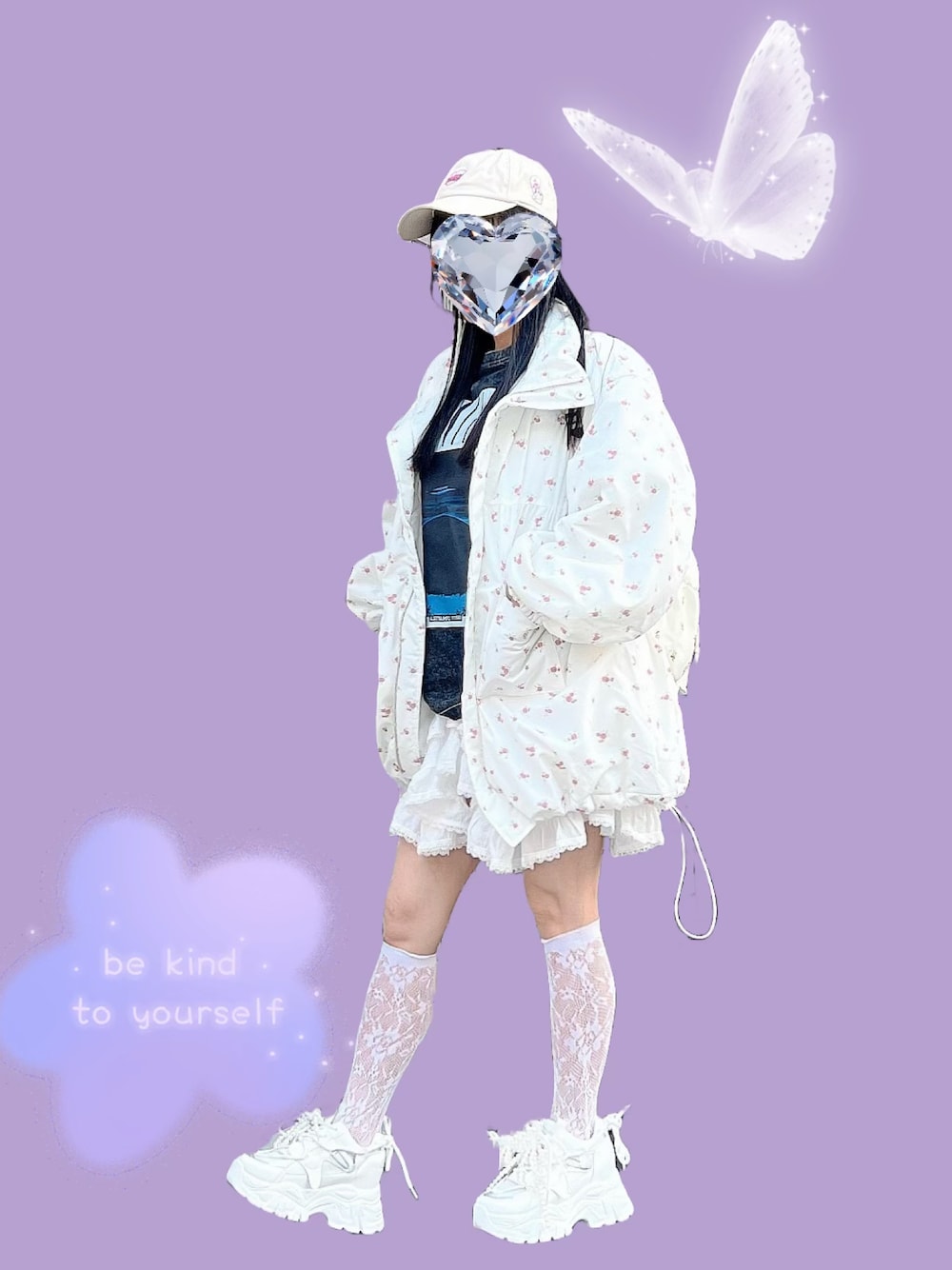 ものすごく久しぶりの投稿です…!7年経ってました笑 merry jennyのパファーコートをメインに今季全て買ったもので春らしいコーデにしてみました。 大きめのAKIRATシャツの下は小花柄のインナーの長袖を着てます。 SPINNSのスカートは丈の段差が好きです。 ノーブランドのダッドスニーカーにはパールリボンの飾りを付けてみました。 足元はレースソックスで軽めに。 写っていませんが、小花柄のリュックをしょっていて、そこにもエスターバニーがいます。