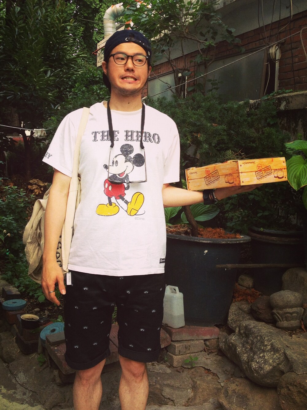 grandma's decho cap american optical safety glasses lotto mickey mouse t-shirt levis half pants