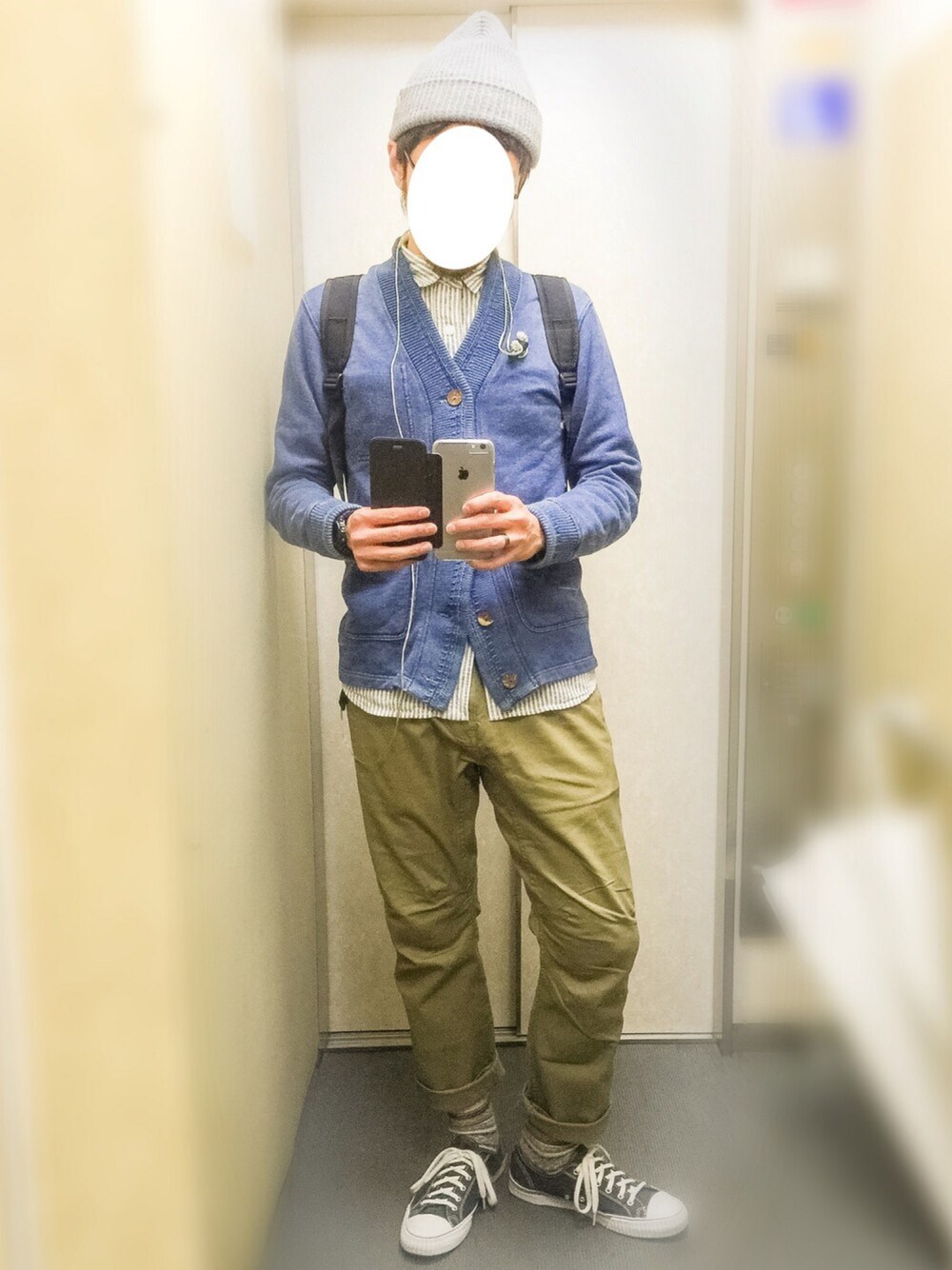 これは昨日のコーデ。 また雨でしたねー。 霧雨程度の雨ってのが鬱陶しい。 メガネ人からすると、霧雨でも傘さしてなきゃメガネびちょびちょになって、すごい不快なんです。 だからといってコンタクトは怖くて出来ません。 今日は4年くらい前に買ったpeacenikのカーディガン。 今ぐらいの季節にめっちゃ重宝します。 どんな格好にも使えてオールマイティだしね。