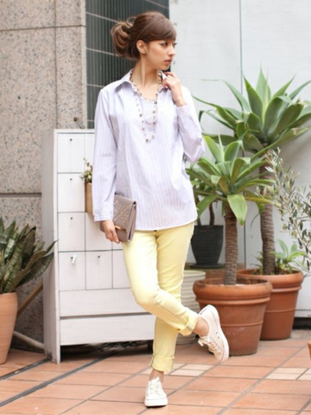 着るだけで美人見えするスキッパーシャツ。カラーパンツとスニーカーでコーデすればこなれ感たっぷりのカジュアルスタイルに。 ボトムでカジュアルダウンさせているけど、シャツを身にまとうだけで大人っぽいハンサムな表情が演出できます。 お仕事ではもちろん、休日使いもできる定番スキッパーシャツは1枚あれば重宝するはず♪