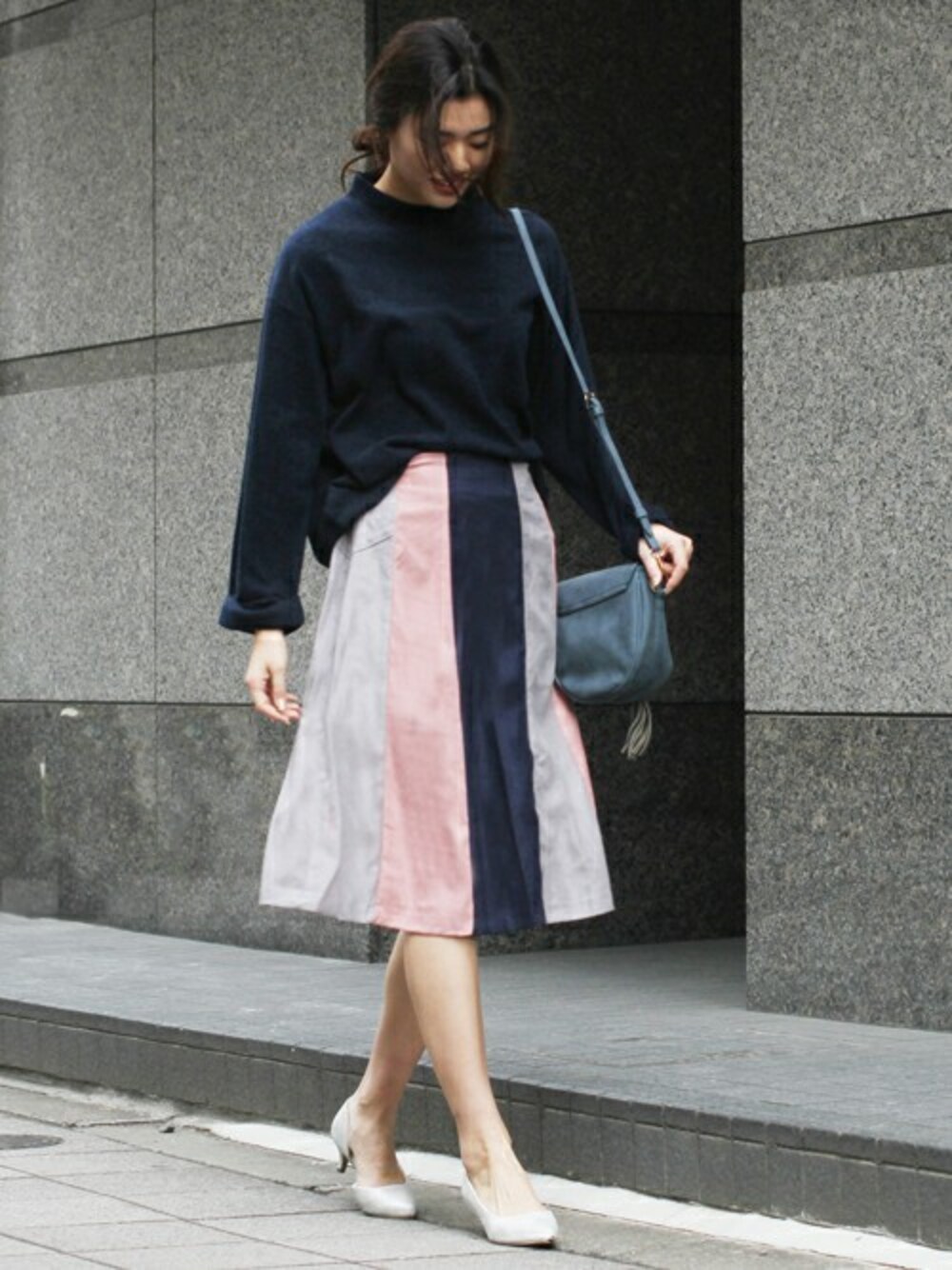 首周りの詰まったプチハイネックが上品で大人っぽい雰囲気になる起毛素材のプルオーバー。 配色スカートで差し色を投入して、こなれたキレイめカジュアルの完成です♪
