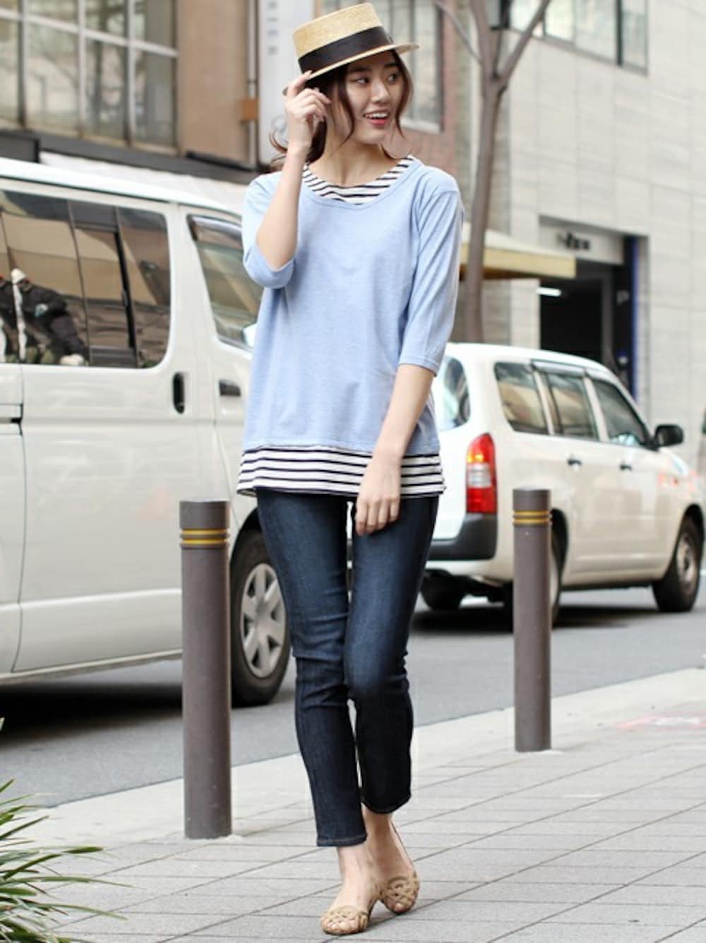 まるでインナーをレイヤードしているような見事なドッキングデザインのトップス!1枚でサマになるから時短アイテムとしても重宝◎中空糸を使用した激ノビデニムは、美脚・美尻効果抜群!夏も冬も1年中快適に穿ける大人気デニムです★