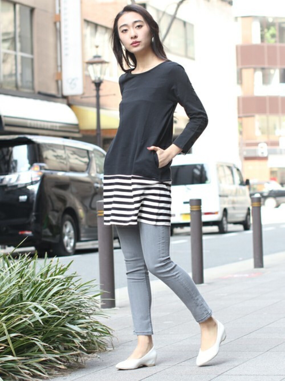 フェリーニのワンピース「楽ちんボーダー切替ワンピース」を使ったコーディネート