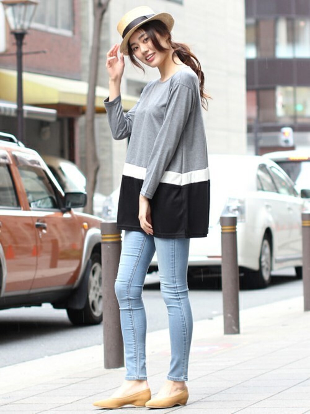 フェリーニのチュニック「配色切替コクーンワンピース」を使ったコーディネート