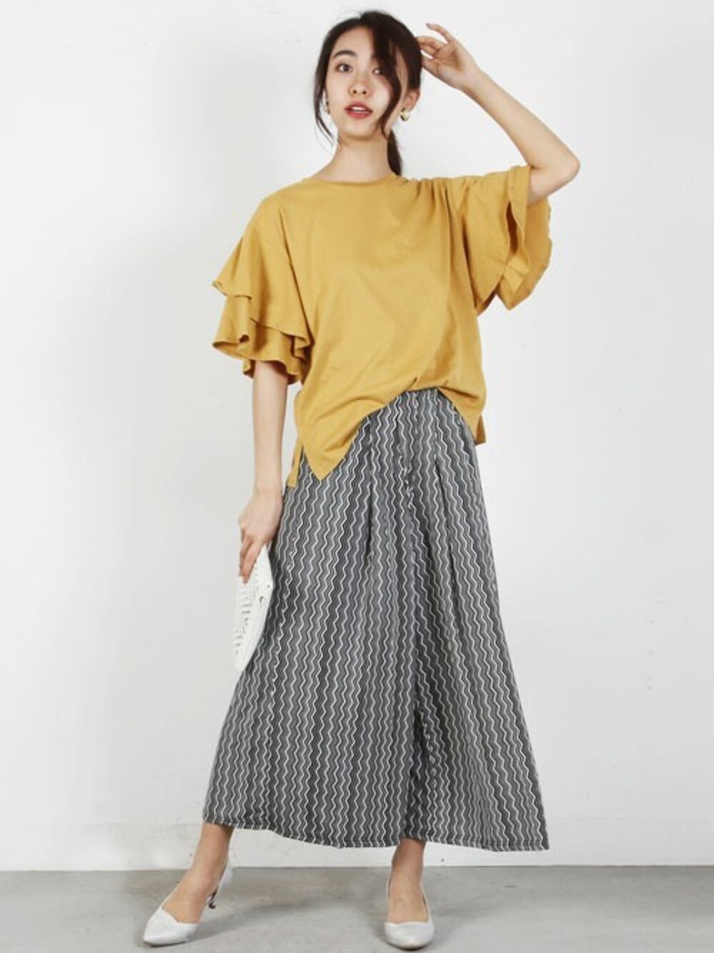 フェリーニのTシャツ/カットソー「袖2段フリルプルオーバー」を使ったコーディネート