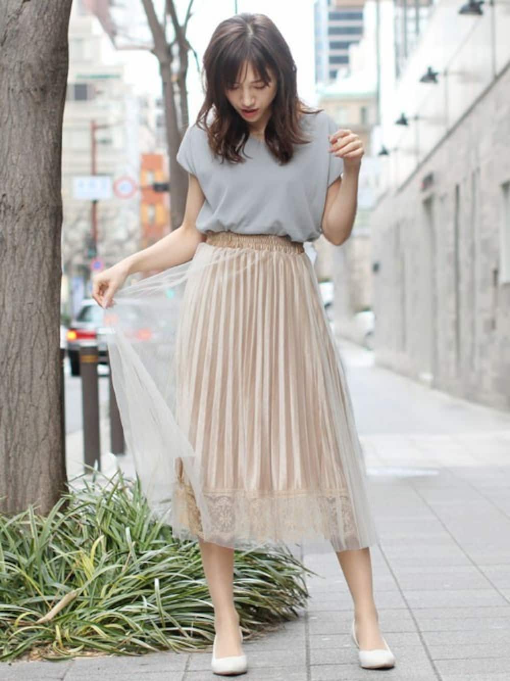 大人っぽいベロア生地の上に、チュールを重ねた異素材使いがオシャレなスカート。 裾は繊細なレースデザインで女性らしさをぐっと高めてくれます。