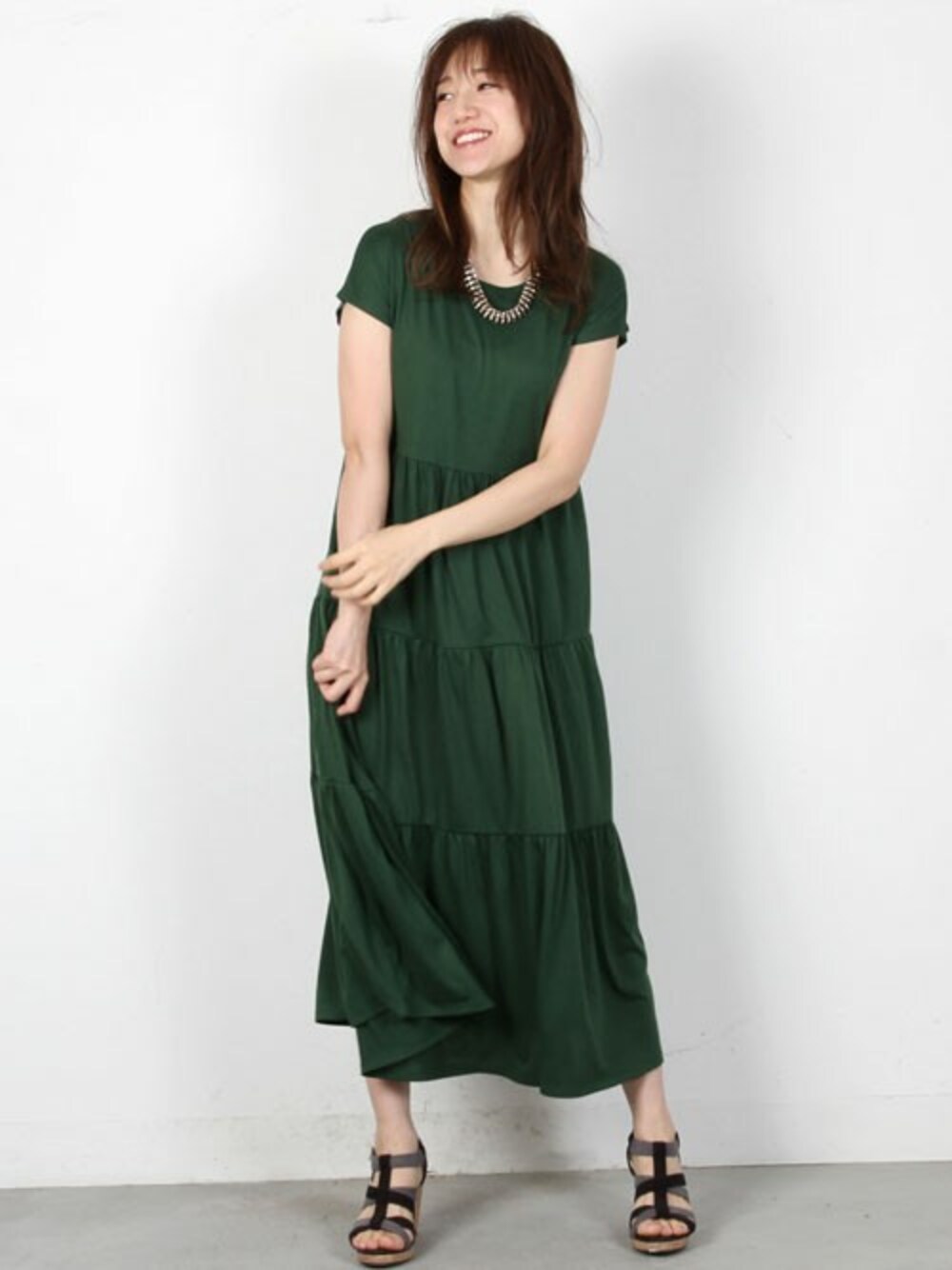 フェリーニのワンピース「ティアードロングワンピース」を使ったコーディネート