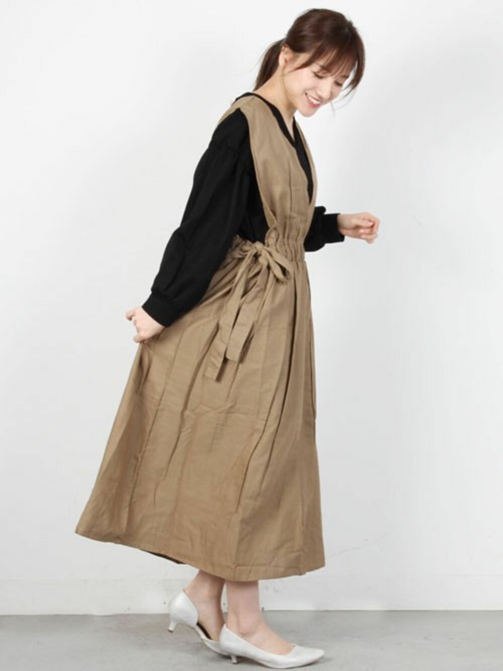 春夏シーズンにピッタリ!お洒落の幅がぐんと広がる大人気のサロペットスカートが綿麻素材で登場。 ウエスト部分の調節でお好みのシルエットで着られます◎