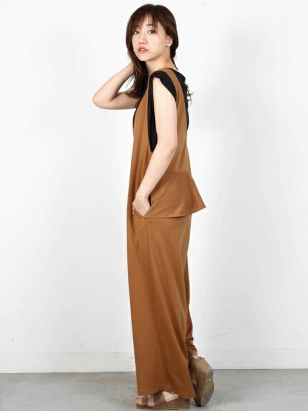 バックについたフリルデザインがさり気なくフェミニンで女性らしさを感じるサロペット♪ ストレスフリーなカットソー素材でデイリーに大活躍間違いナシ!