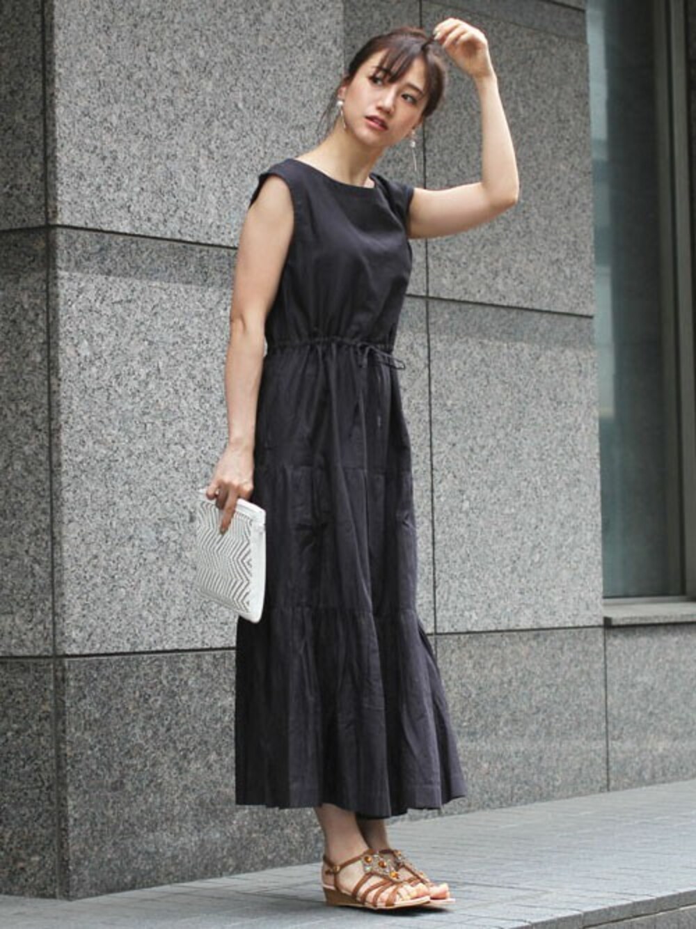 3段のティアードデザインがトレンドライクでフェミニンな印象のワンピース。 サラッと着るだけでサマになる1枚。ウエスト紐で絞りをかければスタイルUPも叶います。