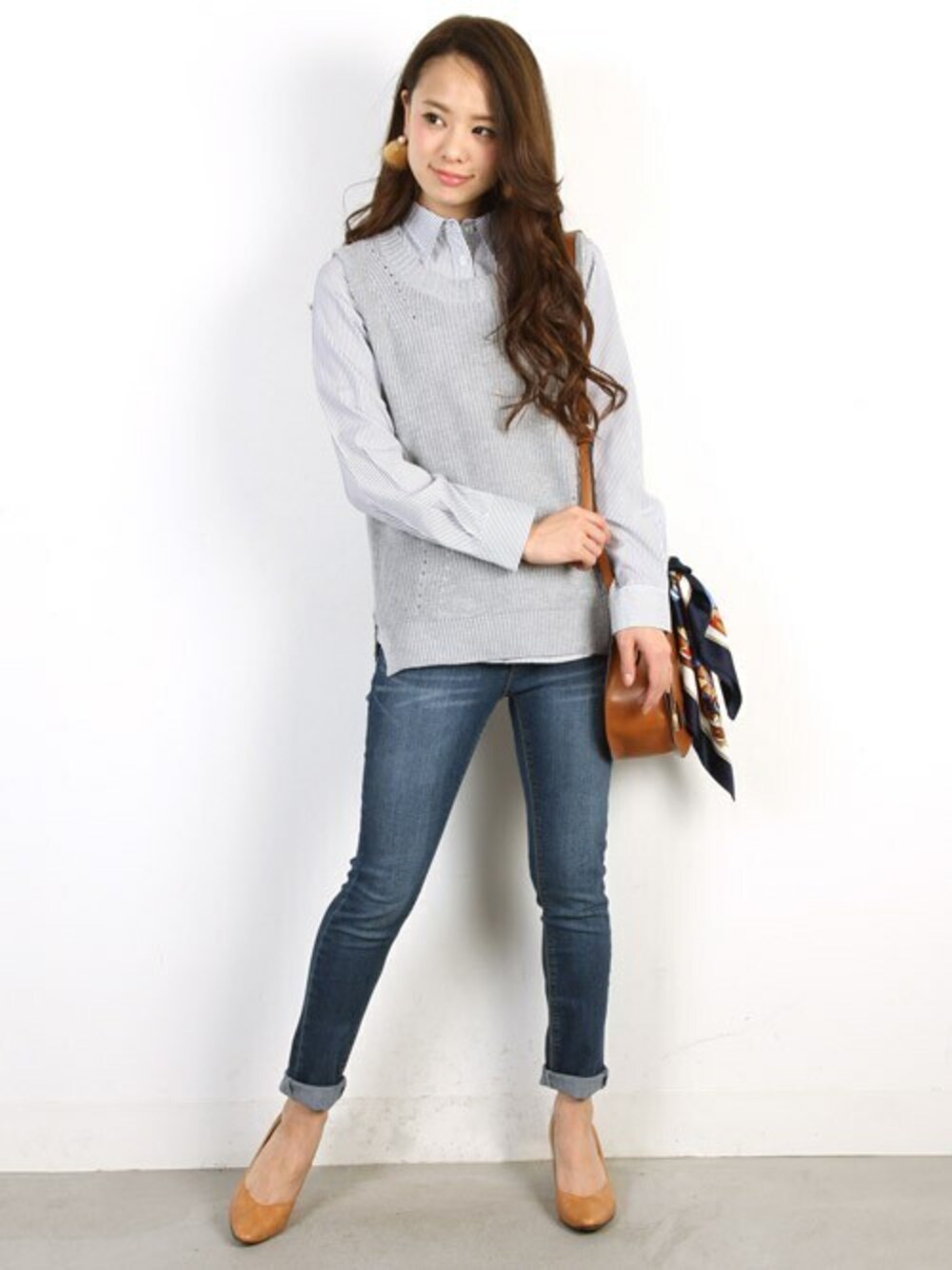 シャツとニットベストがマニッシュな組み合わせ!大人カジュアルに欠かせないニットベストで秋のおしゃれをもっと楽しもう♪