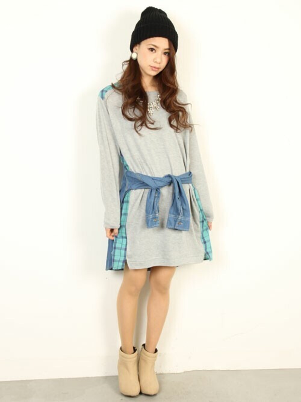 フェリーニのワンピース「チェック柄切替ワンピース」を使ったコーディネート