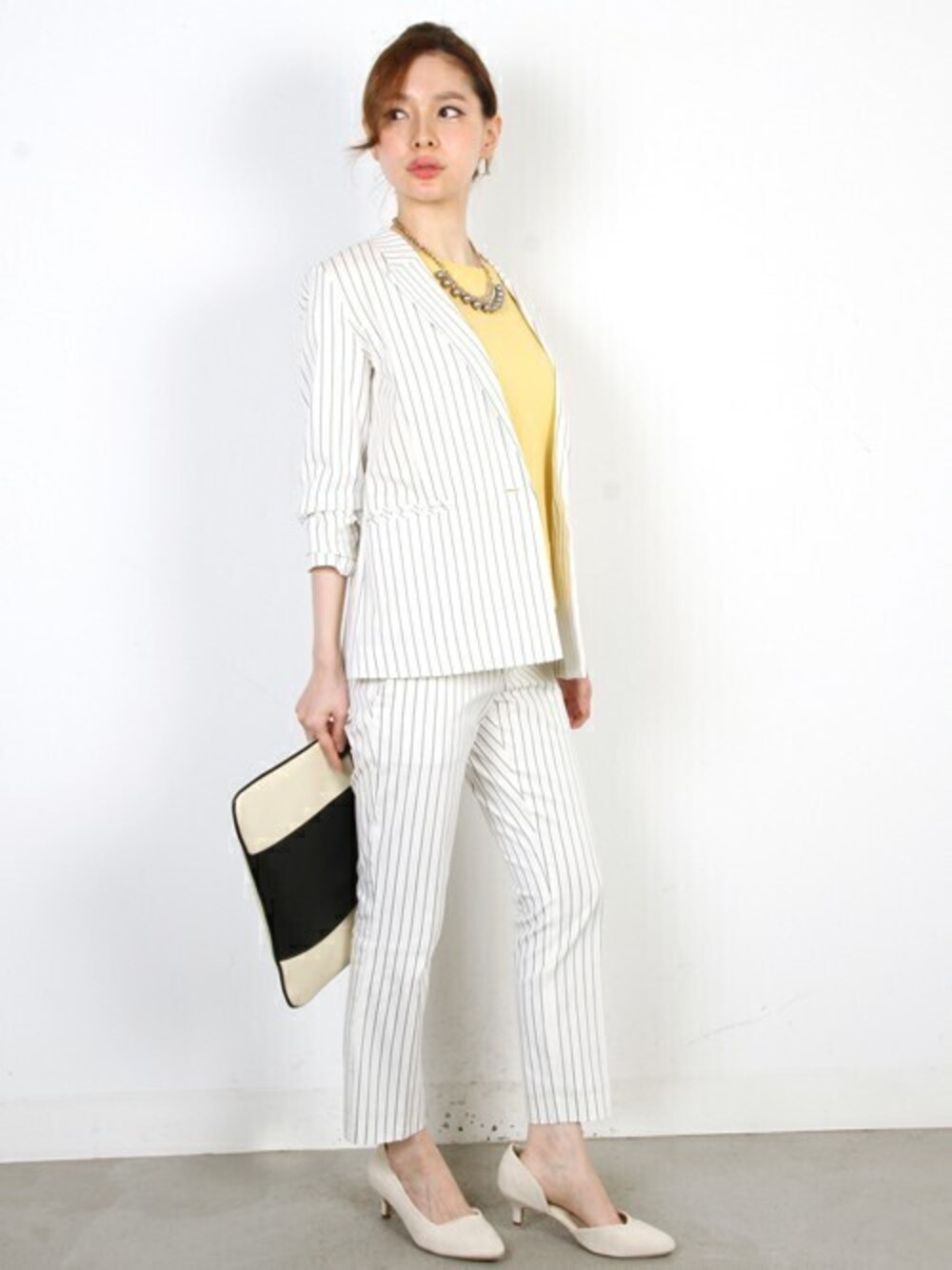 フェリーニのテーラードジャケット「ストライプテーラードジャケット」を使ったコーディネート