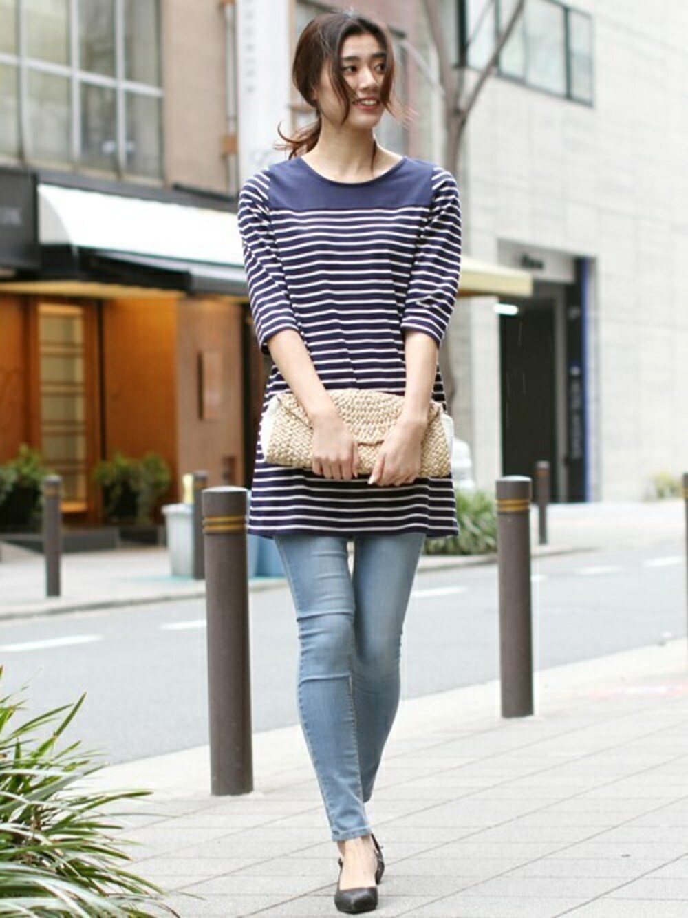 フェリーニのチュニック「ヨーク切替ボーダーワンピース」を使ったコーディネート