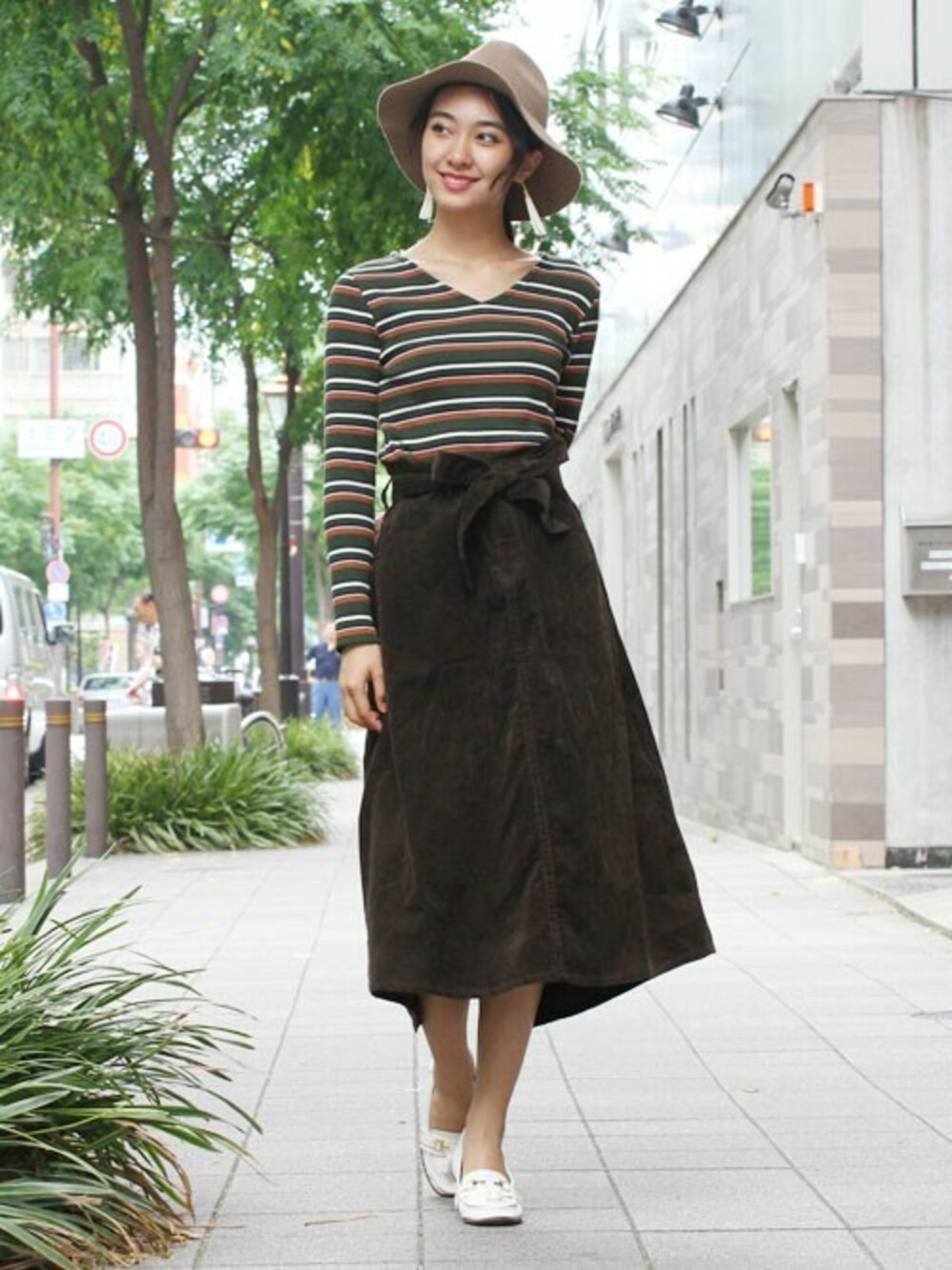 肌に程よくフィットするもっちりとしたリブが今の季節丁度いい!ミックスボーダーで程よく着栄えて同系色のコーデュロイスカートを合わせて大人可愛くスタイリング。 ミモレ丈のフィッシュテールスカートは、オシャレ女子に大人気♪ 1枚持っていればそれだけで今っぽいスタイルに!