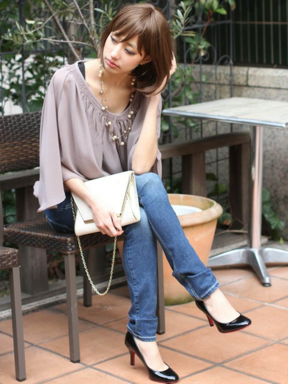 ブラウス×デニムのイイ女コーデ♪女性らしさとこなれ感を両立させて、どんなシーンにもマッチするスタイリングです。 ふわっとゆれる程よいボリューム感にこだわって完成したフェリーニ自慢のエアリーブラウスは、上品な透け感で、動いた時にその可愛さを発揮します! 「激ノビデニム」はストレッチ抜群で一度穿いたらヤミツキになる当店ロングセラー人気商品!