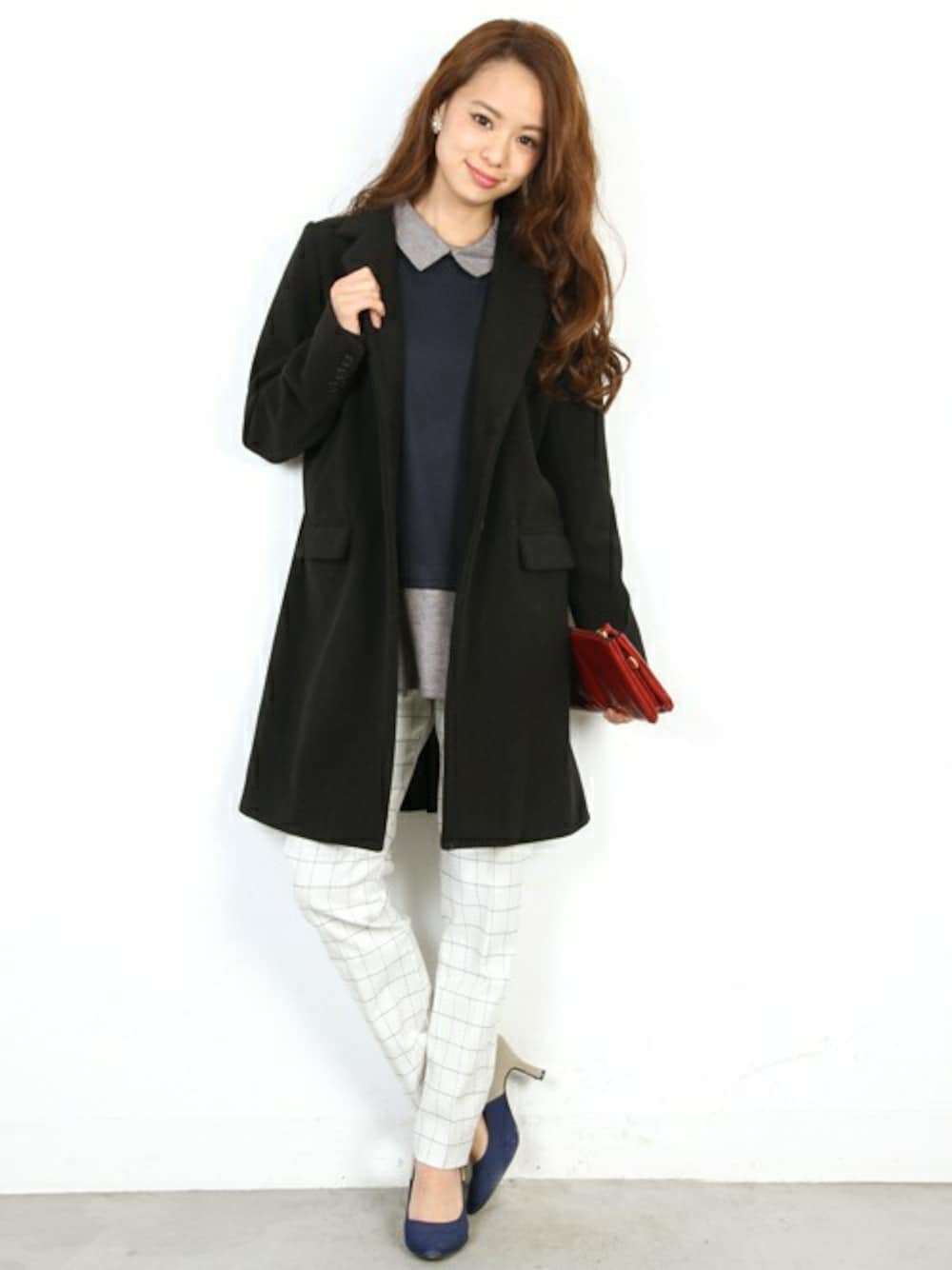 フェリーニのニット/セーター「襟付きフェイクレイヤードプルオーバー」を使ったコーディネート
