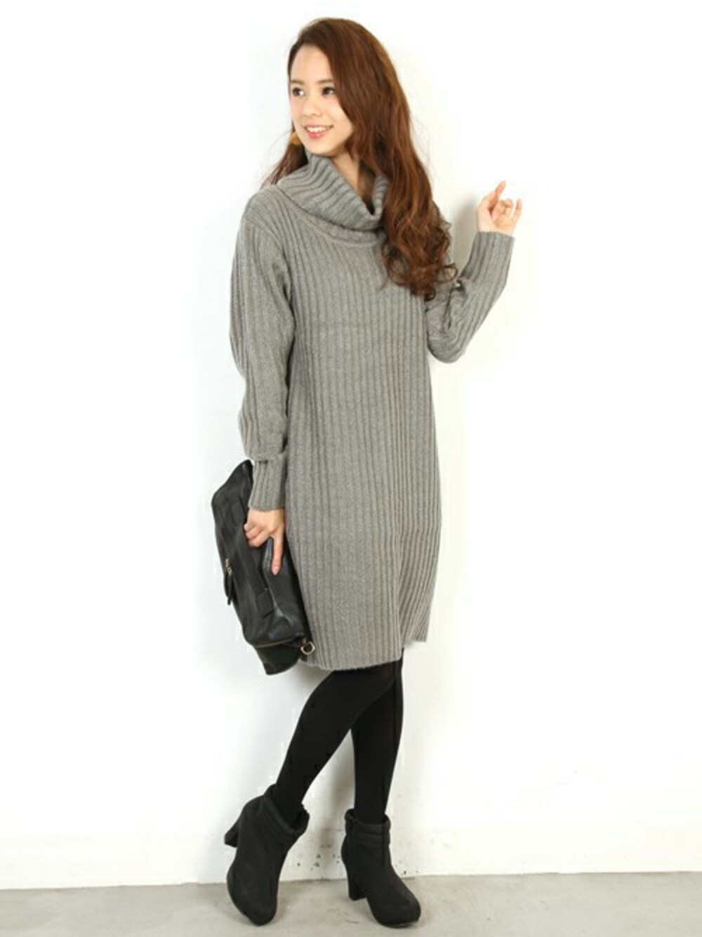 フェリーニのワンピース「リブ編みタートルネックワンピース 」を使ったコーディネート