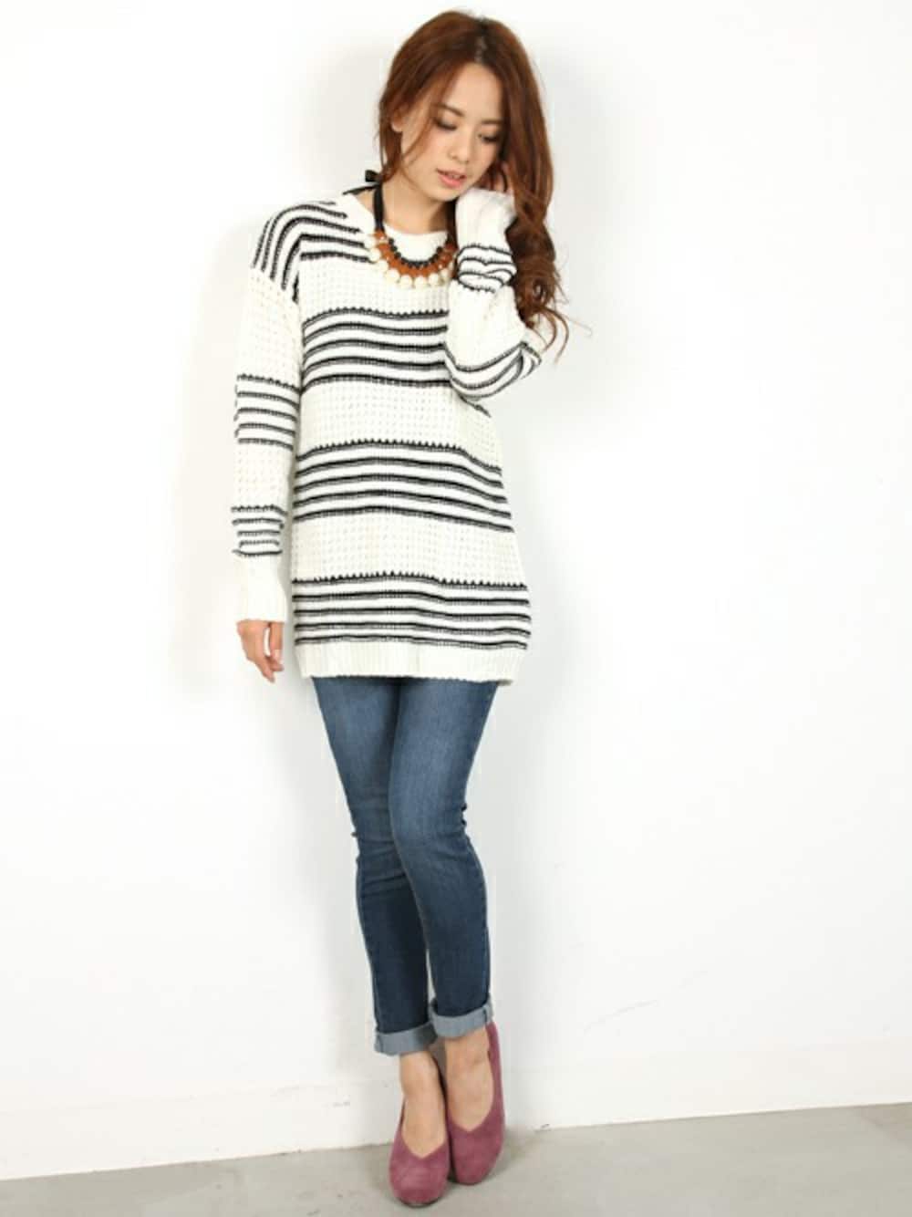フェリーニのニット/セーター「変わり編みボーダーニット」を使ったコーディネート
