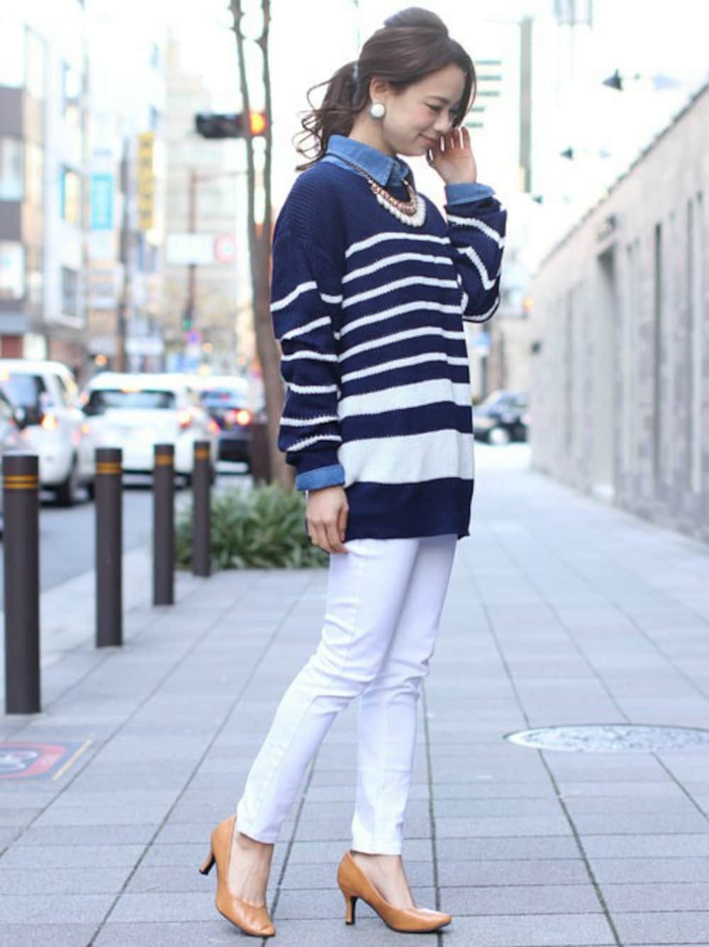 フェリーニのニット/セーター「イレギュラーボーダーニットプルオーバー」を使ったコーディネート