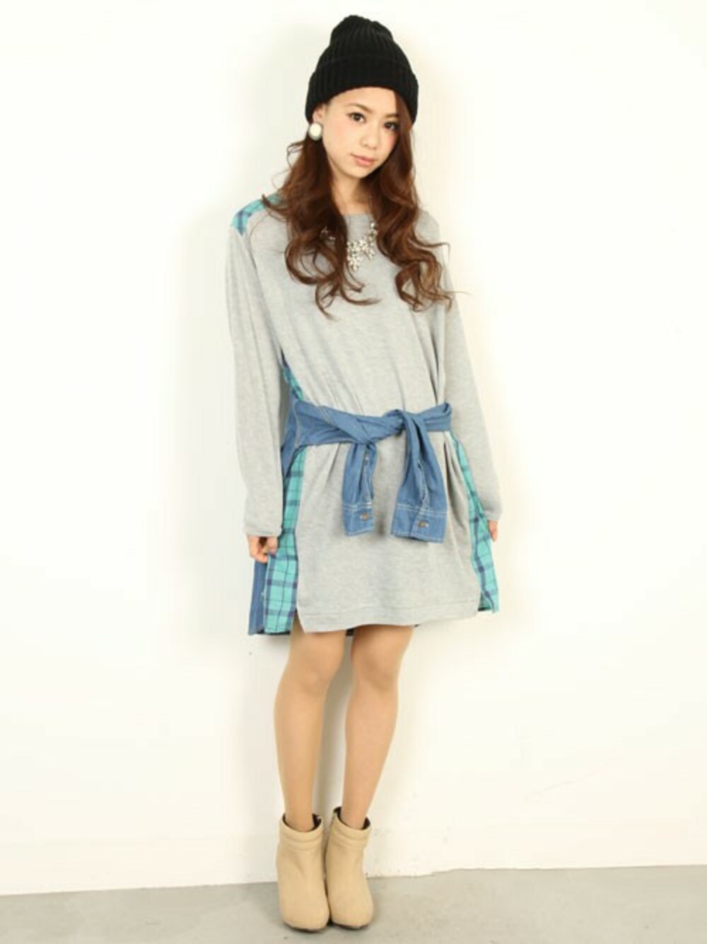 フェリーニのワンピース「チェック柄切替ワンピース」を使ったコーディネート