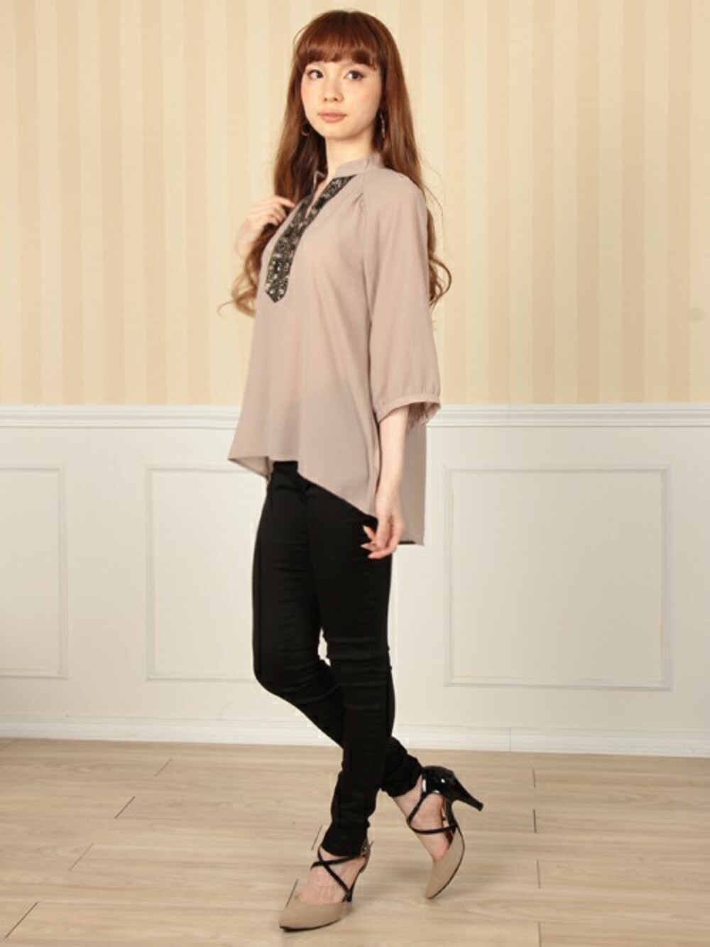 フェリーニのシャツ/ブラウス「ビジュー付きシフォンチュニック」を使ったコーディネート