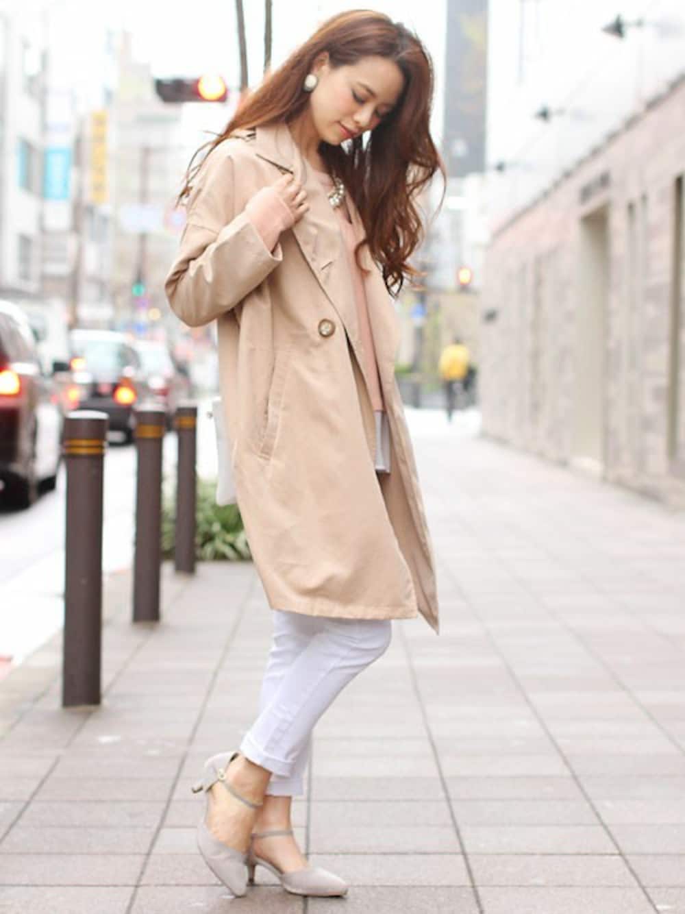 ドロップショルダー&程良いオーバーサイズでラフに着こなせるゆるトレンチ♪春先のお出掛けにピッタリです! 軽い着心地なのに、しっかりした生地でプチプラに見えない!ストライプの裏地もこなれ感たっぷり! ピンクベージュの淡いトップスと白デニムで春カラー満開のご機嫌コーディネートです★