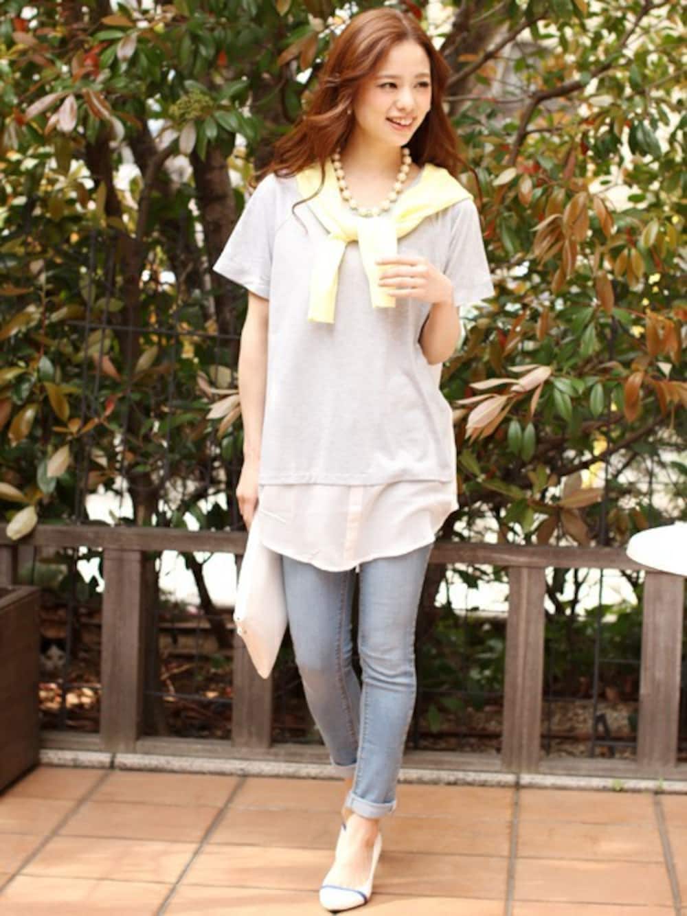 フェリーニのTシャツ/カットソー「異素材ドッキングチュニック」を使ったコーディネート