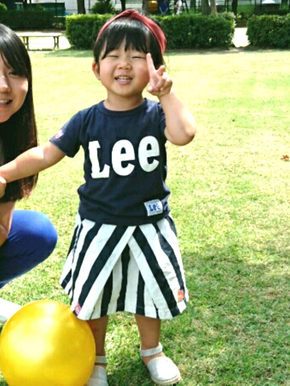 夏の日の1枚 スカートにインパクトがある分、トップスはネイビー、シューズはシルバーの単色にしてシンプルに☀