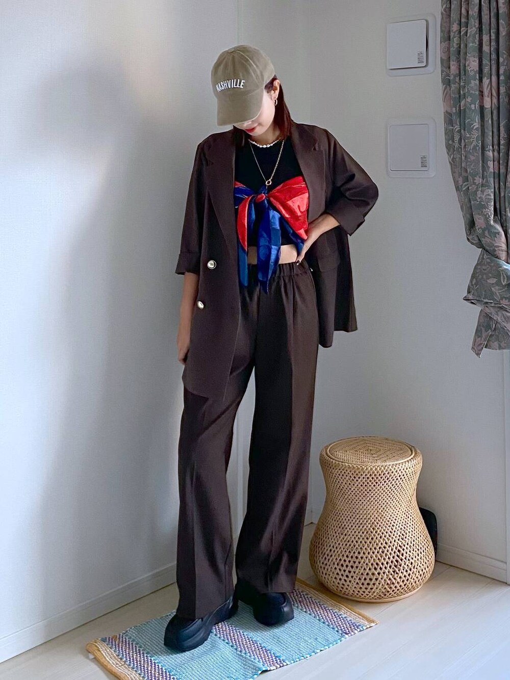 秋物欲しいけど暑いなぁぁって 時はブラウンカラーのアイテムがおすすめ! 夏物も秋らしく着こなせます🍂 パンツはイージーPTなのでセットUP品ではありません× 色が絶妙に違いますが気にならない程度なのと このパンツ履き心地良すぎて、、🥺 しかも通気性も◎ 私物のスカーフでアレンジを加えて 大人お洒落なスタイリングにしました InstagramにアレンジHow toリールを今週中にはUpしますね✨✨ 是非、フォローをお願いします Insta⇨@fever_2saya GWに異動してきてまだまだ未熟ですが たくさんのお客さまとお話しできて幸せです♡ 調布PARCO店でお待ちしております ジャケットおすすめPOINT◎ ーーー ・素材/機能/アップデート イージーケア ストレッチ マシンウォッシャブル 糸と仕上げにより、程よい落ち感とソフトで膨らみ感のある風合い。 ナチュラルなストレッチがあり着心地が良い。 性質の異なる2種の糸をミックスすることでメランジ感のあるナチュラルな見え方。今年はチェックが新登場。 ・デザイン マルチなシーンで活躍する、金ボタンを使用したWジャケット。 袖口のスリットは、スタイリングに合わせて折り返して変化を付けていただけます。 適度なゆとりのあるサイズ感はデイリー使いしやすく、オンでもオフで活躍間違いなしのジャケットです。