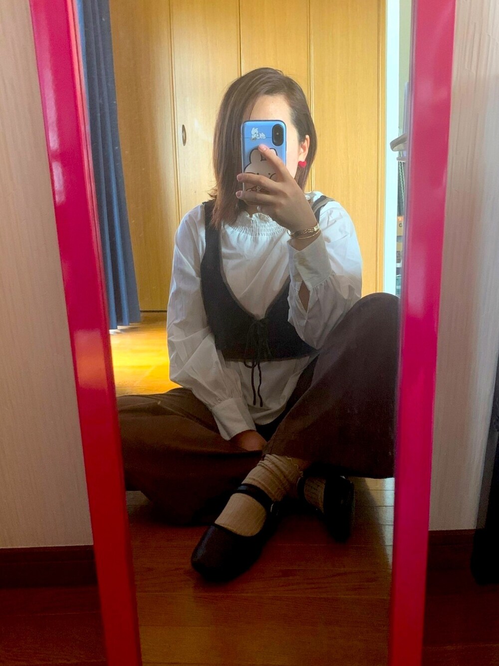 こんにちは🌿 ブラウンコーデです🟤 少し見にくいですが、ビスチェがグレーっぽいブラウンなので甘くなりすぎないコーデになってます! 今年流行ったものやシンプルなものを使ったコーデネートなので是非皆さんもクローゼットの中のものでお試しください🌼
