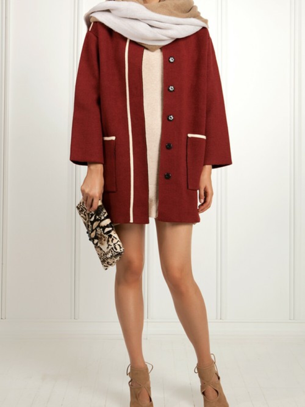 It may be getting cold but you’ll be sure to look hot this season, in our varsity inspired sweater coat, offered in both red and blue. Layer this versatile Fall staple over a dress for brunch with your girlfriends or pair perfectly with jeans for a Sunday of apple picking and sipping hot cider by the fireplace. 80% Acrylic, 20% Nylon Dry Clean Do not Bleach Iron at 110 degrees max Notes: Very Solid Material Double Sided Model is 173 cm/5'8'' and is wearing size S/M