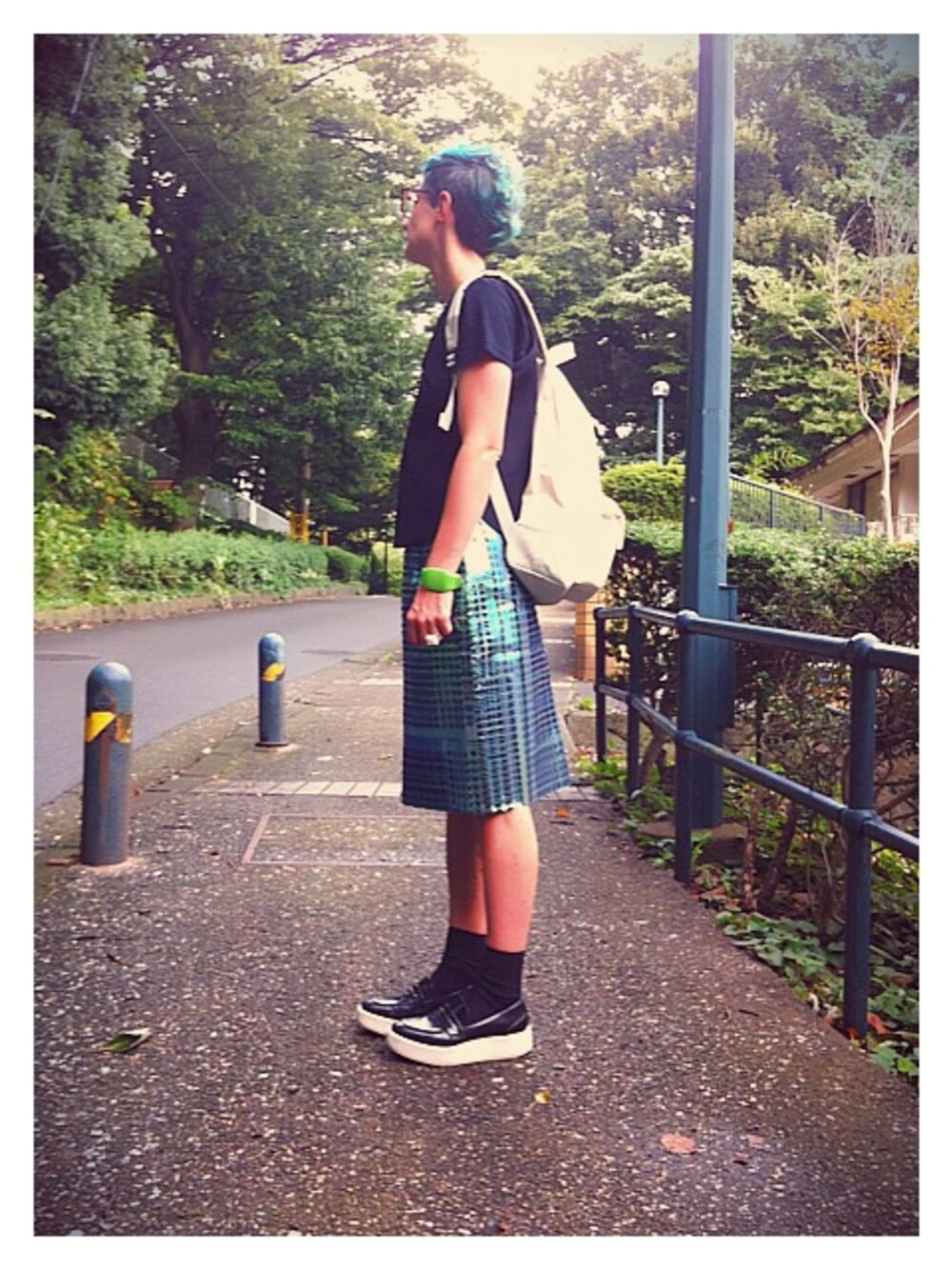 Hologram camouflage skirt by Starstyling, .efilevol white backpack, black mesh top and platform loafer. I'm going to see Topshop*Marques Almeida collaboration, that starts today!