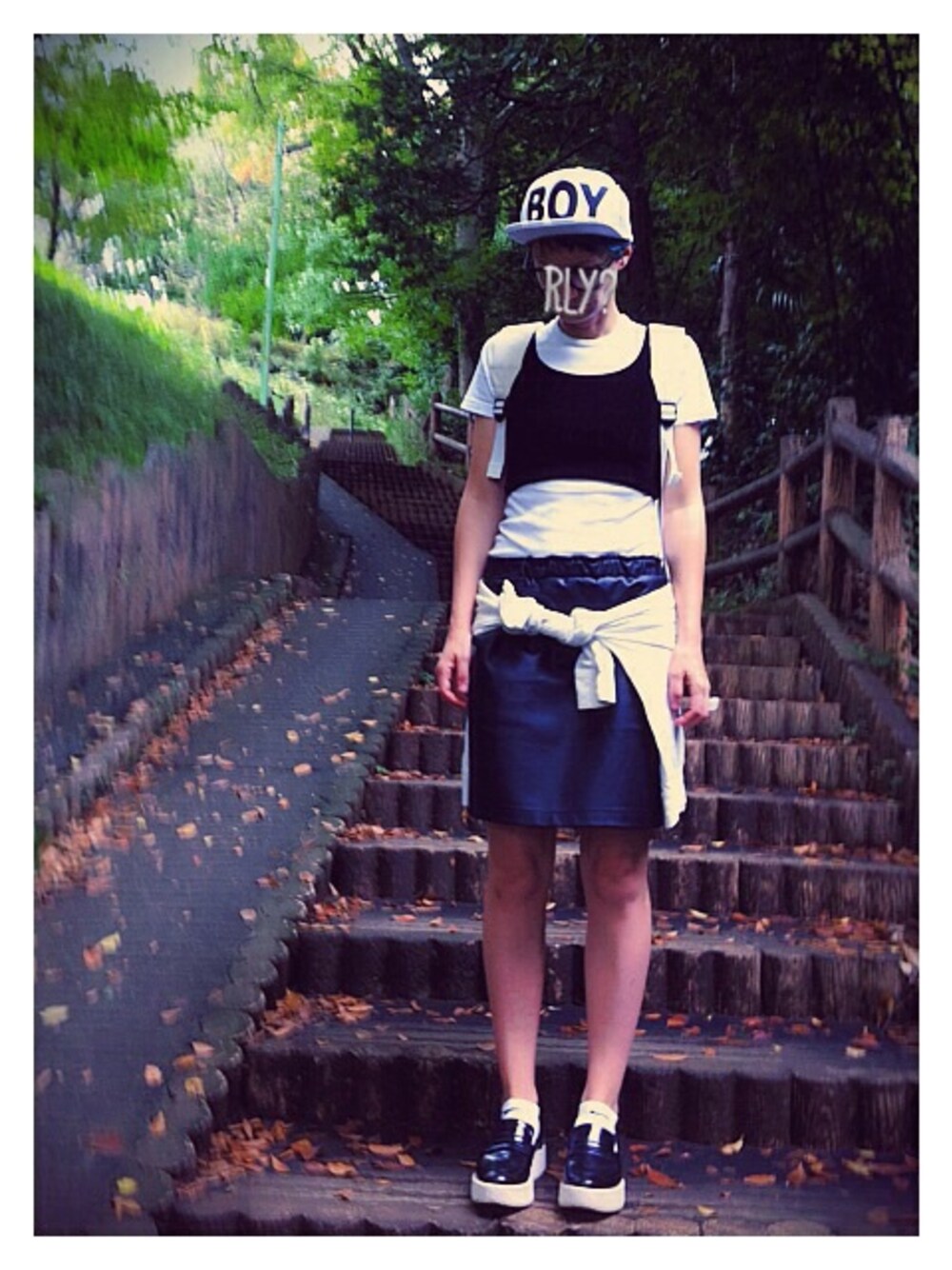 zhのスカート「フェイクレザー ゴムタイトスカート」を使ったコーディネート