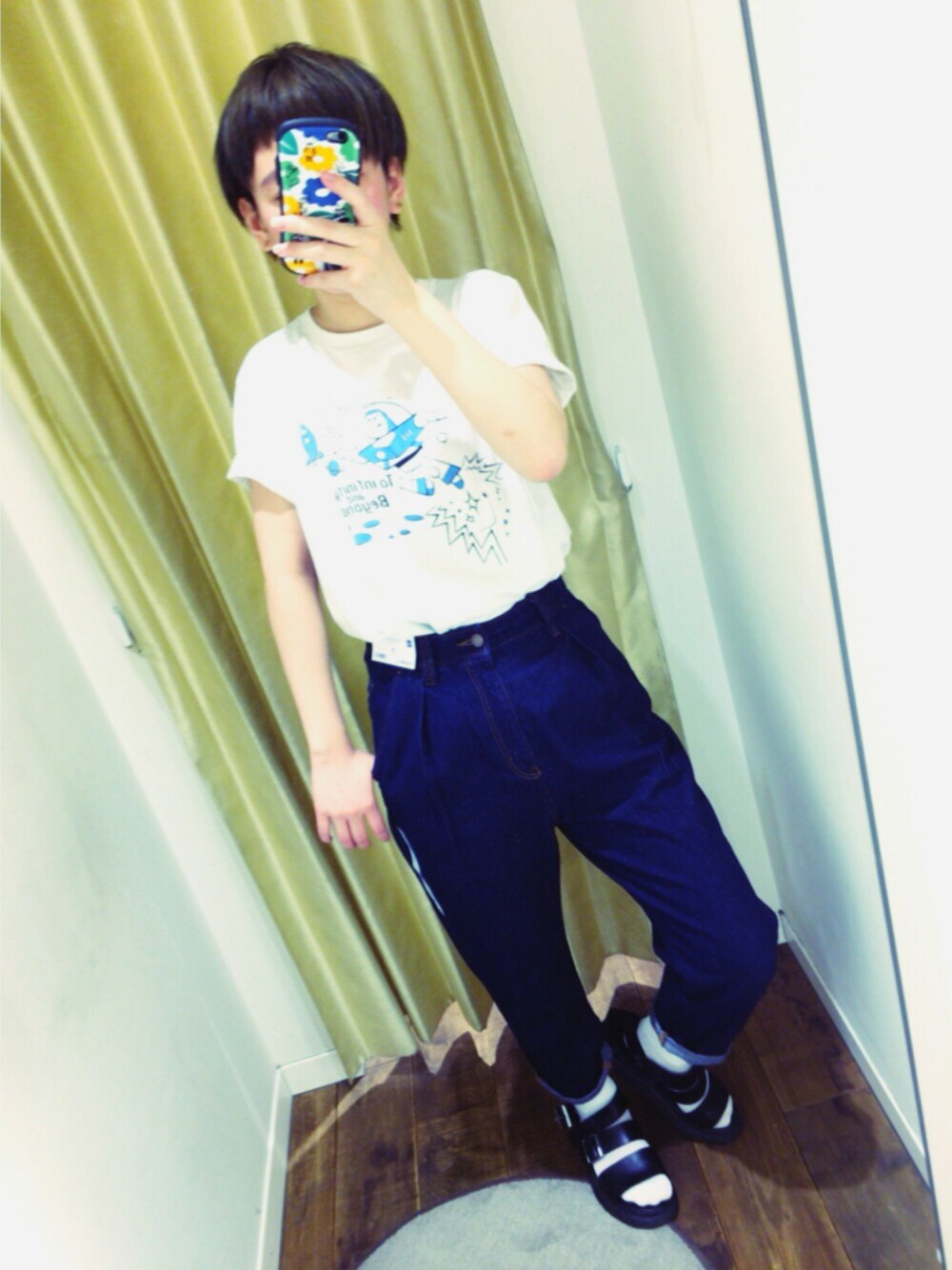 可愛いな〜 GUのハイウエストデニム こちらのパンツ購入予定デス🤗笑 Tシャツは去年のお気に入りのバズUT