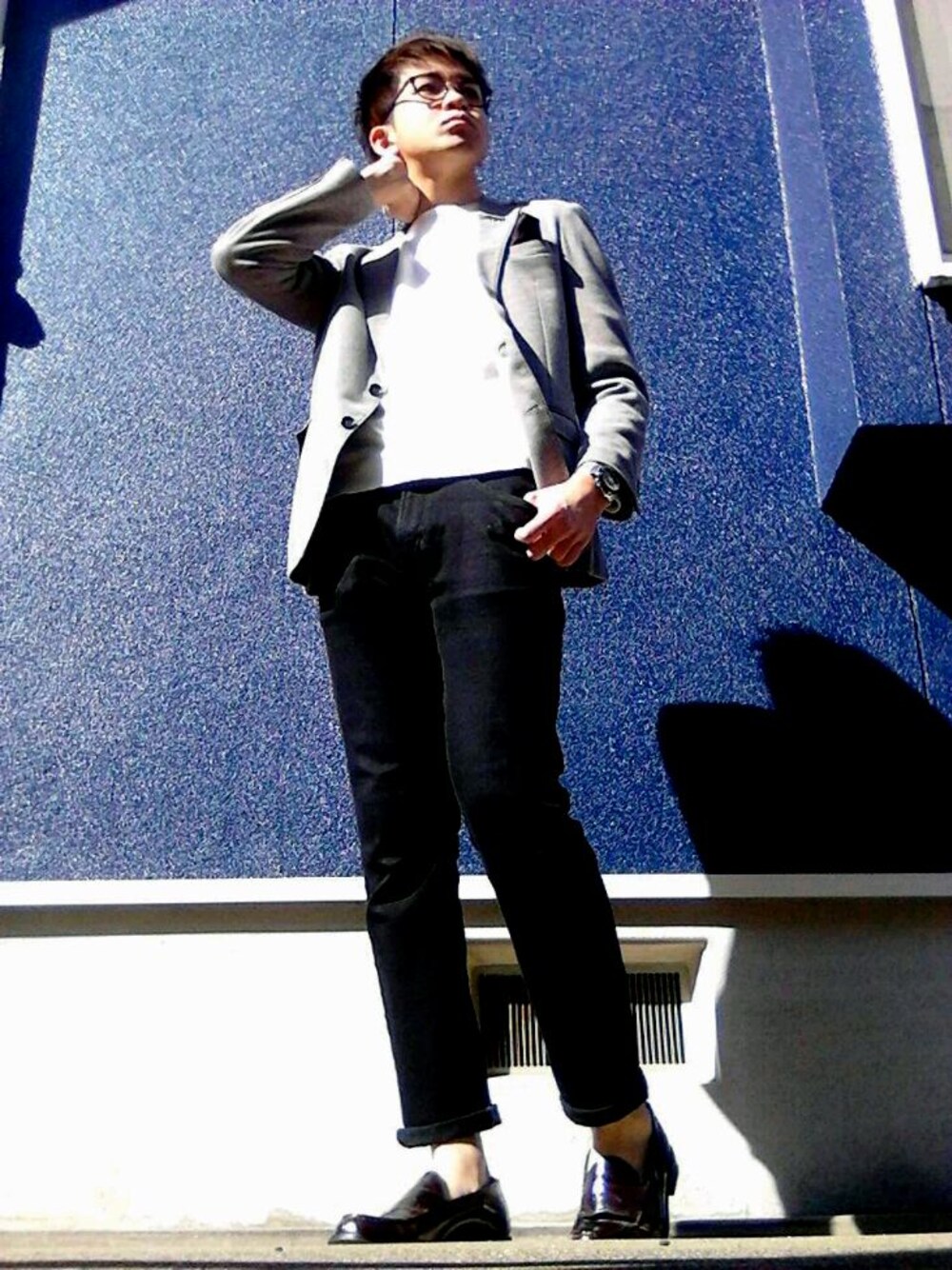 おはようございます! 今日のお仕事コーデです! グレーのジャケットに白のクルーネックニット、黒のテーパードデニム、本革ローファーのシンプルコーデです! 個人的になかなか決まったとおもってます! 今から仕事なので、短文ですが、いいね、セーブ待ってます(´・ω・`)