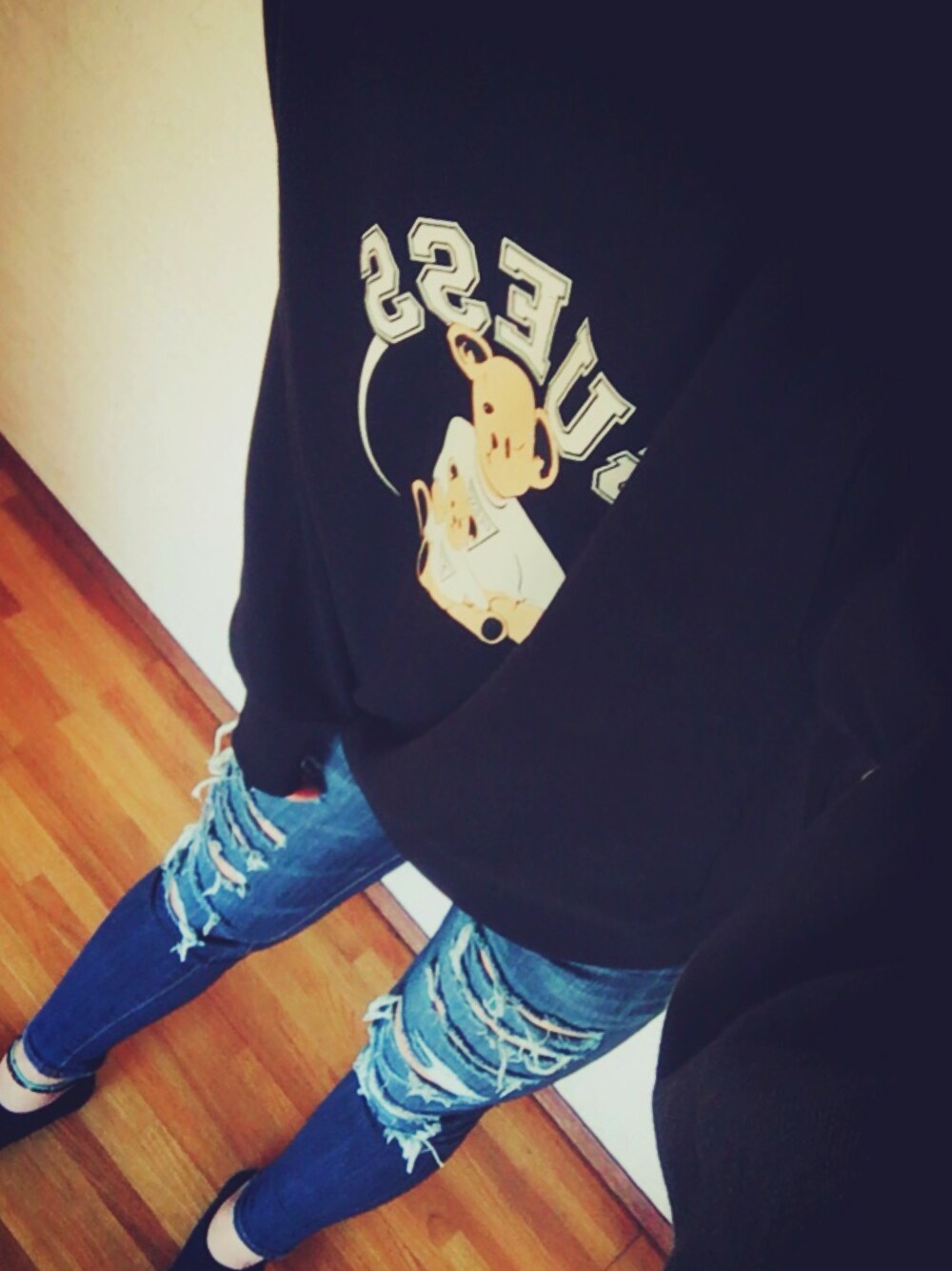 そこまでguessが好きなわけじゃないけど可愛いから買ってしまった✋️ 出かけないから適当にデニムに合わせただけ🐻 おやすみなさい