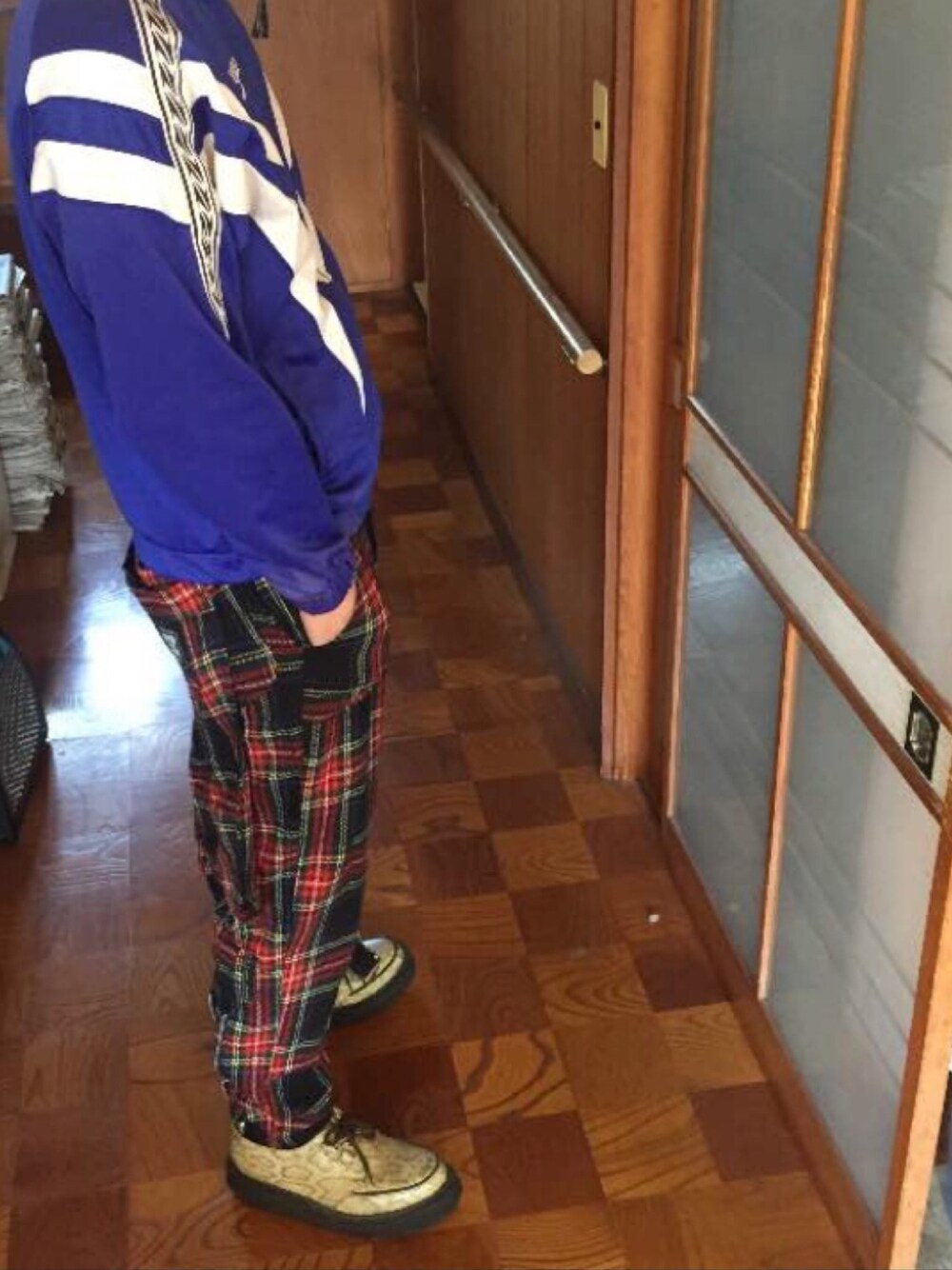 スピードジャージ第2弾! 昔黒夢の清春さんがジャージをパンクっぽくメチャクチャカッコ良く着こなしてまして、それを思い出すコーデです。 ボトムはボンテージパンツにヘビ柄のラバーソールを合わせ、ピストルズよろしくな個性を放っています。