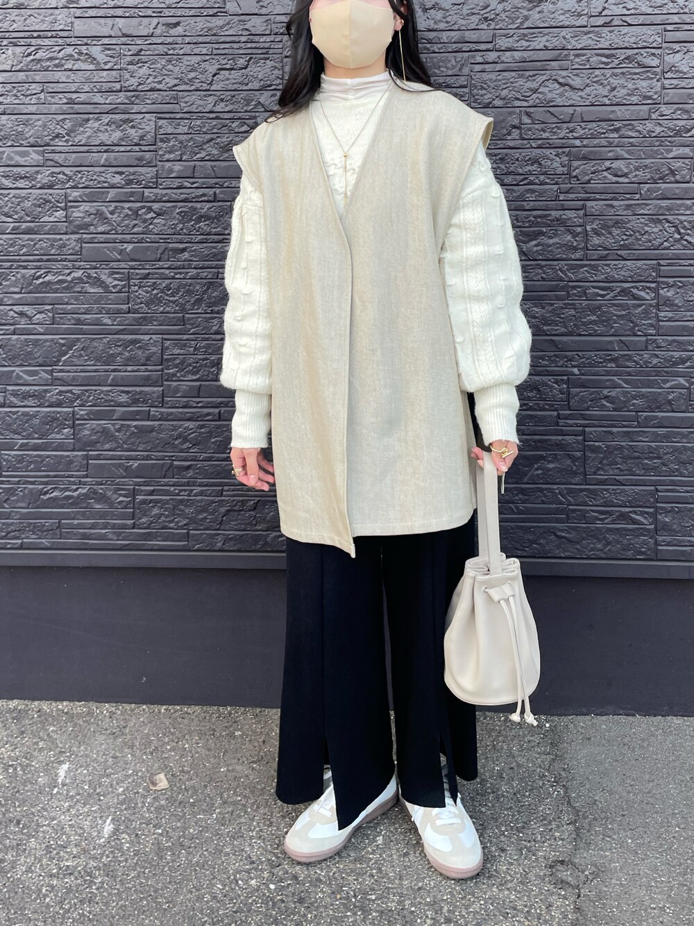 2wayのカーディガンのデザインが可愛い🫶🏻 nugu のスニーカー、めちゃめちゃ歩きやすくて 愛用してる👟🤍 髪は外巻きに。 instagram..ffm_r2