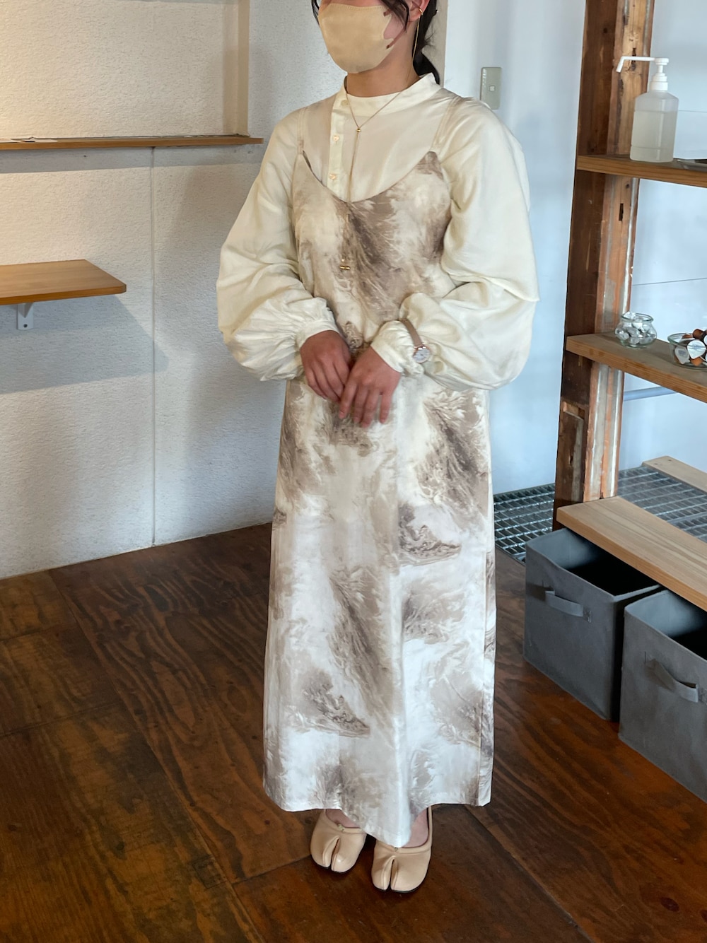 カフェラテっぽいデザインのキャミワンピがお気に入り🏷️ 髪は適当お団子にバレッタを🙃 Instagram..ffm_r2