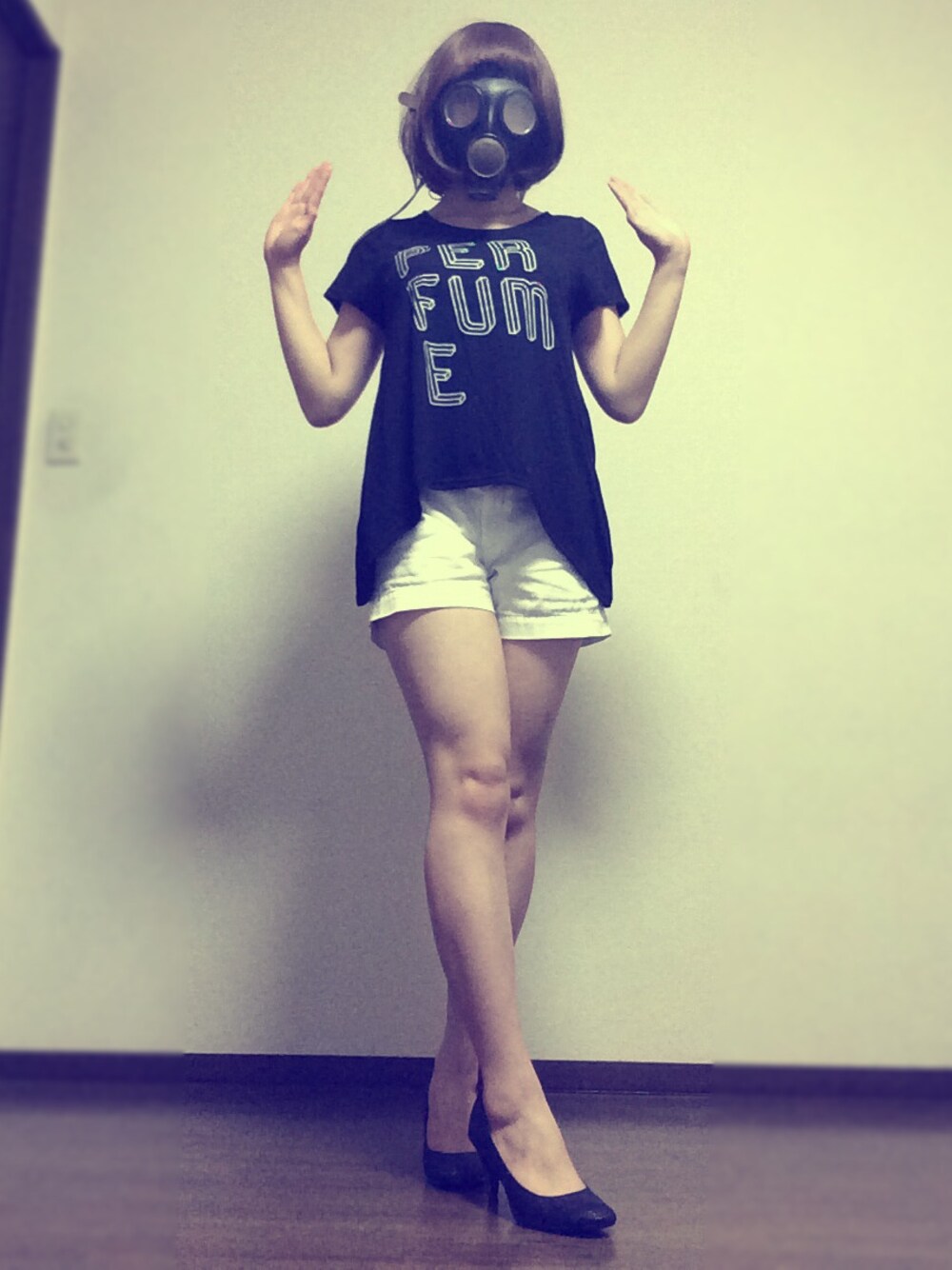 そう、このウィッグはのっちコス のために購入したんですね。はい。 今やガスマスク専用になってますけど。はい。 ぐるんぐるんで入手した Tシャツお気に入りじゃけん♡(広島弁) Perfumeのポージングって ジョジョ立ちって言っても 通じるよね その反対も然り。