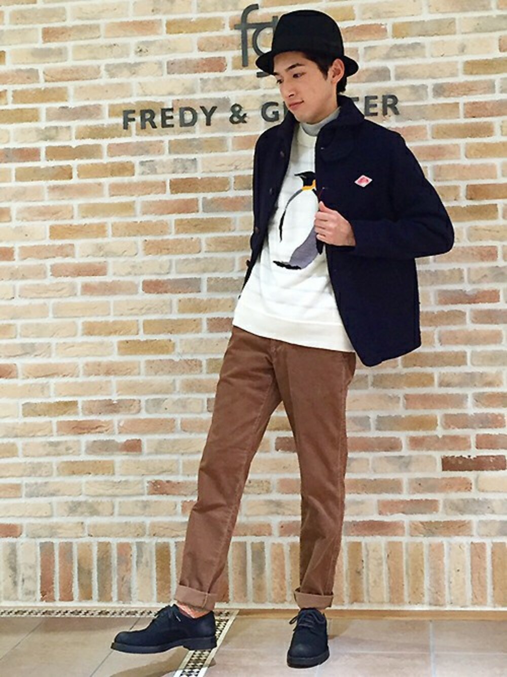 やって来ました!今期大注目のペンギン柄ニット!! 昨年も大人気だったシロクマ柄に続いてファニーで存在感たっぷりな一枚に仕上がりました。 人気の秘密はそのかわいいデザインだけでなく何とリバーシブルになっている所。 うっすらとボーダーが透けているので、一枚でも充分コーデの主役になります。 今年はハイネックをのぞかせたレイヤードがおすすめ。 冬のおでかけのお供にいかがですか?