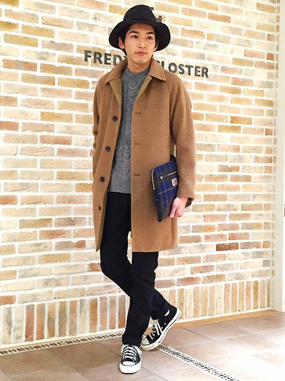 今シーズン外せないカラーのひとつ、キャメルのアウターをメインに、縦のラインを意識した コーデ。 長めのアウターは程よくゆるっとしたサイズを選ぶのがポイント。その代わりに ケーブル柄のベストからスキニーまで、シャープなIラインをイメージしすっきりとまとめています。 ブラックが要所要所でしっかりと引き締め効果を果たしてくれています。 ■アウター(AW558005)キャメル/サイズ1 ■パンツ(40693559002)ブラック/サイズ29