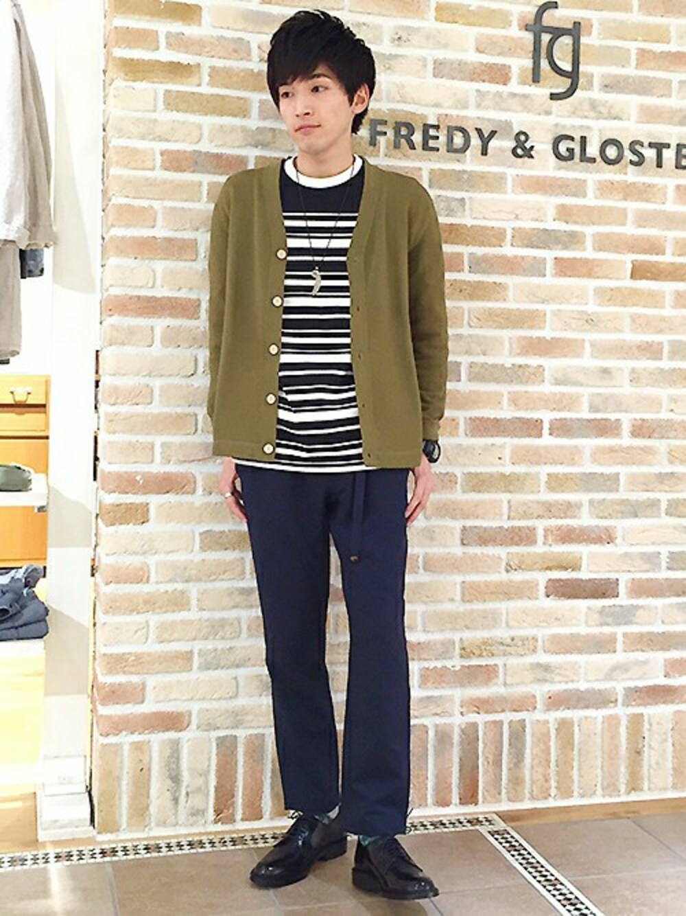 マサくん(FREDY&GLOSTER 栄)のTシャツ/カットソー「【八嶋智人さん ドラマ 着用】ローゲージVネックカーディガン」を使ったコーディネート