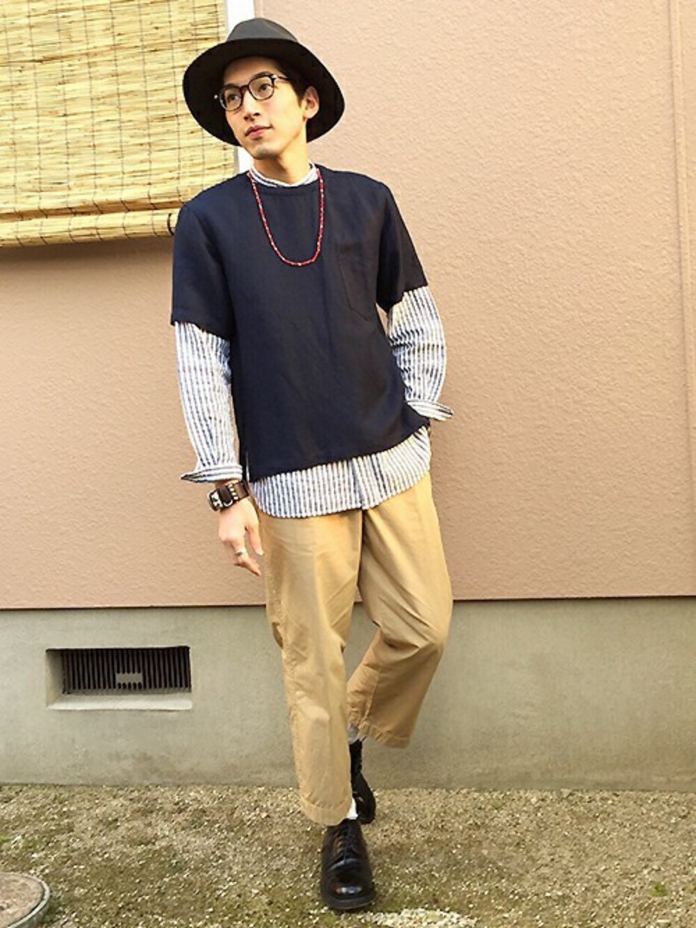 トレンドの大きめシルエットアイテムのレイヤード。 丈感が絶妙なワイドパンツがコーデを今年らしく仕上げてくれます。 インナーをシャツにする事で質感の差が出てメリハリのあるスタイルに。 効かせ色のネックレスもいいポイントになっています。