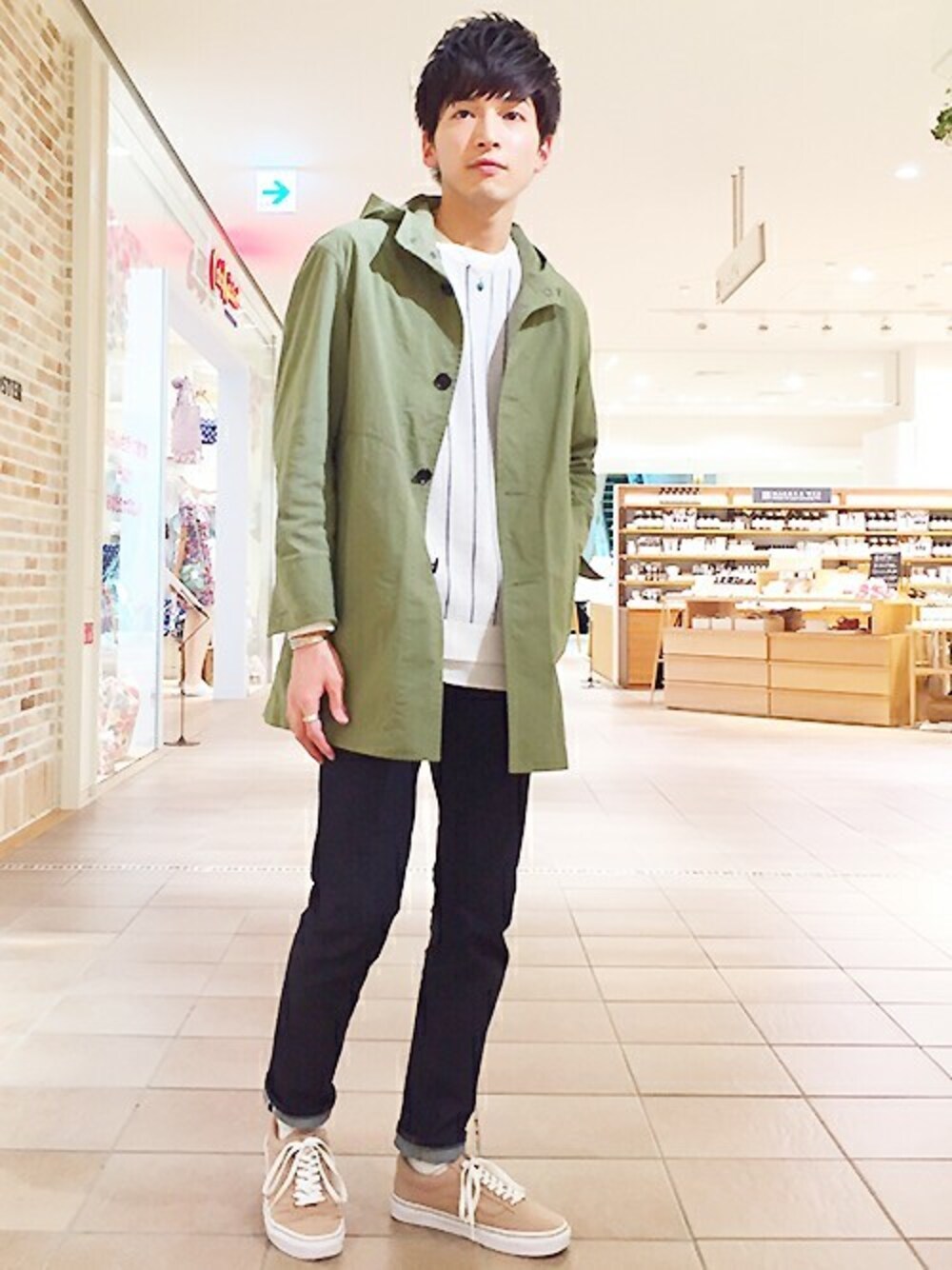 マサくんのステンカラーコート「ナイロンオックス フード付ロングコート」を使ったコーディネート