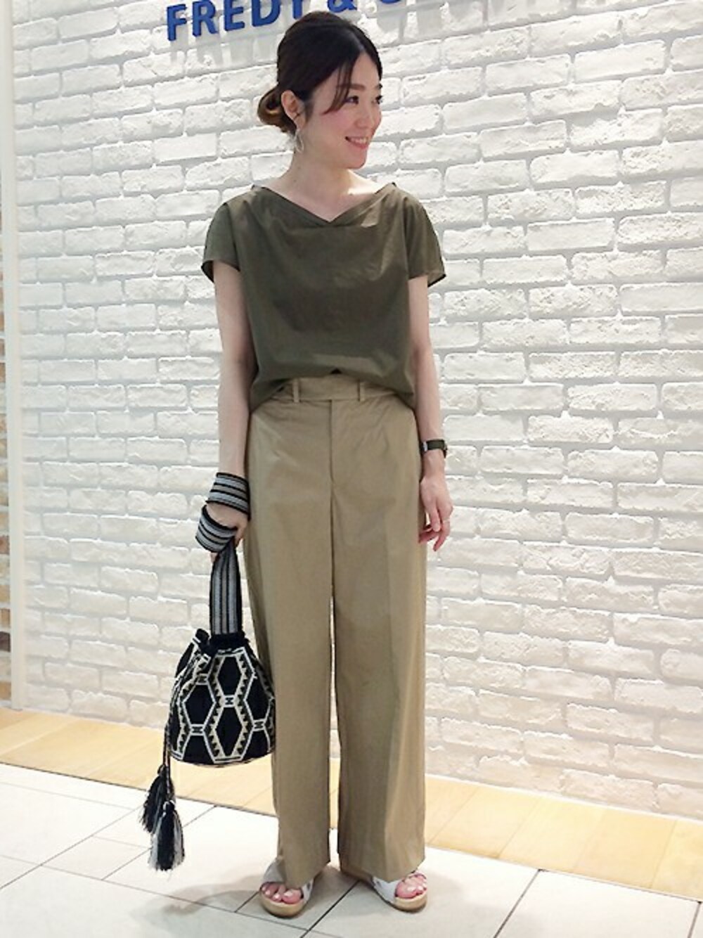 アースカラーで纏めて少し季節先取りの秋らしさを意識しました。 もちろんどちらも薄手の軽い素材なので夏も快適に着られます。 浅めのVネックでデコルテを見せるだけで女性らしい雰囲気が出せますね。 シンプルなコーディネートなので、バックを存在感のあるものにしています。 ◆バッグ(YP632115)ブラック/FREE 【SUMMER SALE開催中!】 ご好評頂いておりますSUMMER SALE、まだまだ盛り上がっています! 更にアイテムを追加しておりますのでもうセールに行った方、これからという方にもおすすめの アイテムをご用意してお待ちしております☆
